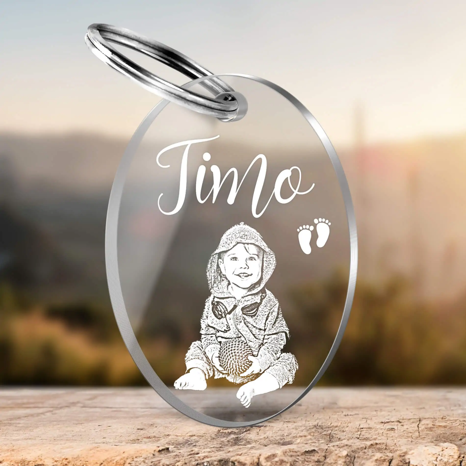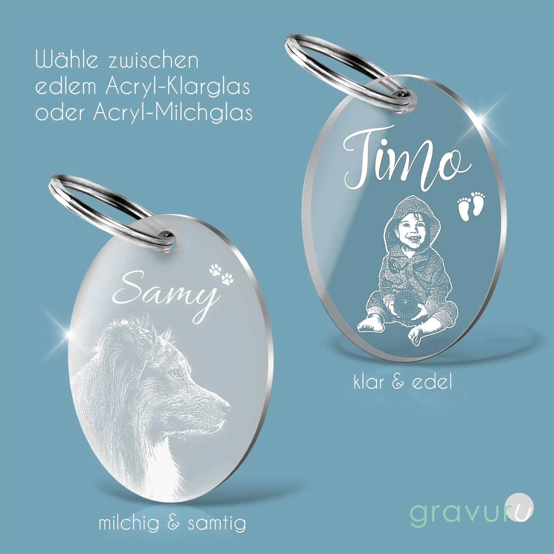 Schlüsselanhänger aus Acrylglas mit Foto-/ Textgravur