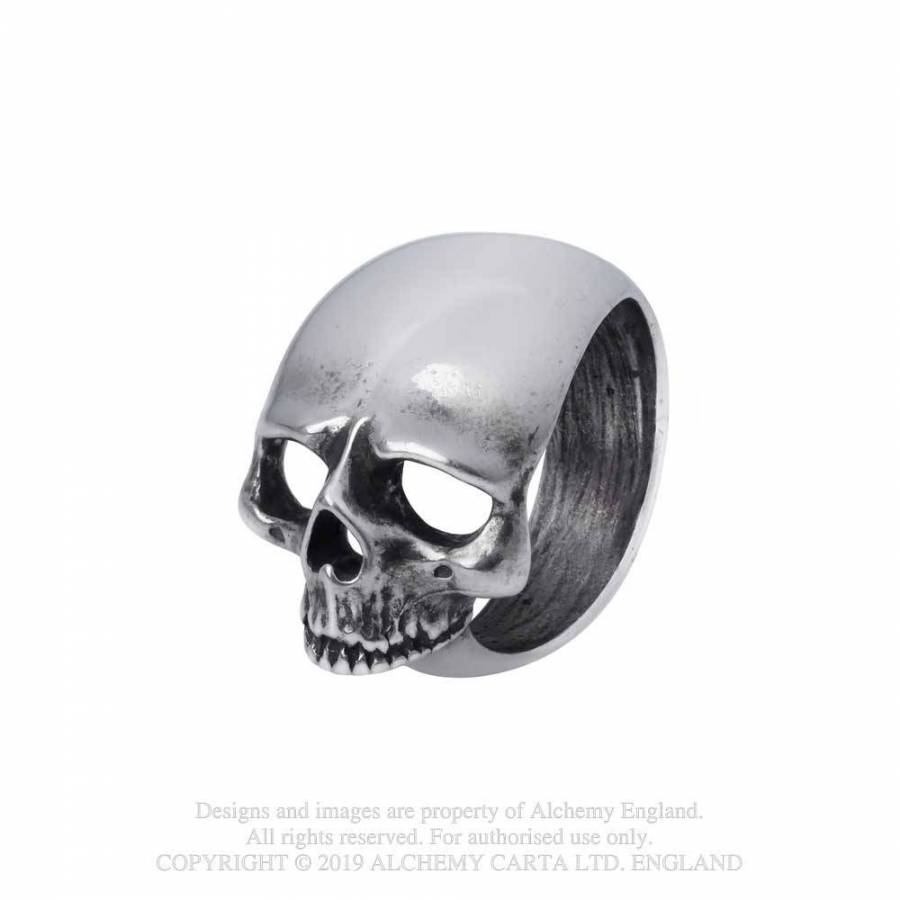 Ring von Alchemy Gothic mit einem halben Schädel. Fein gearbeitet und ein echter Hingucker.