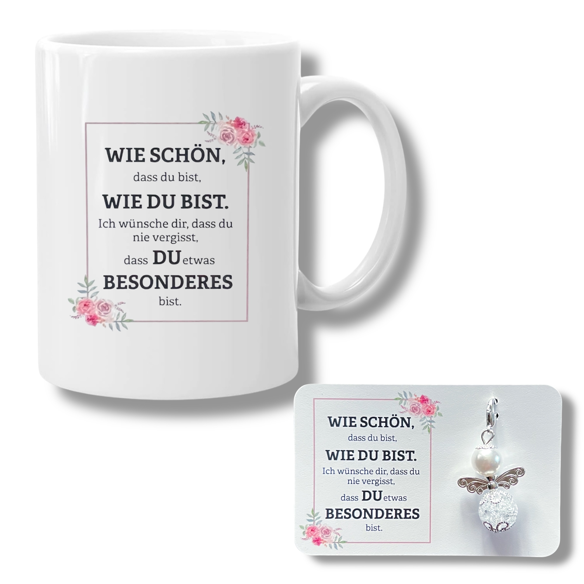 Besondere Menschen Tasse mit Schutzengel-Kärtchen, Keramik 330ml, Spülmaschinenfest, Geschenkset