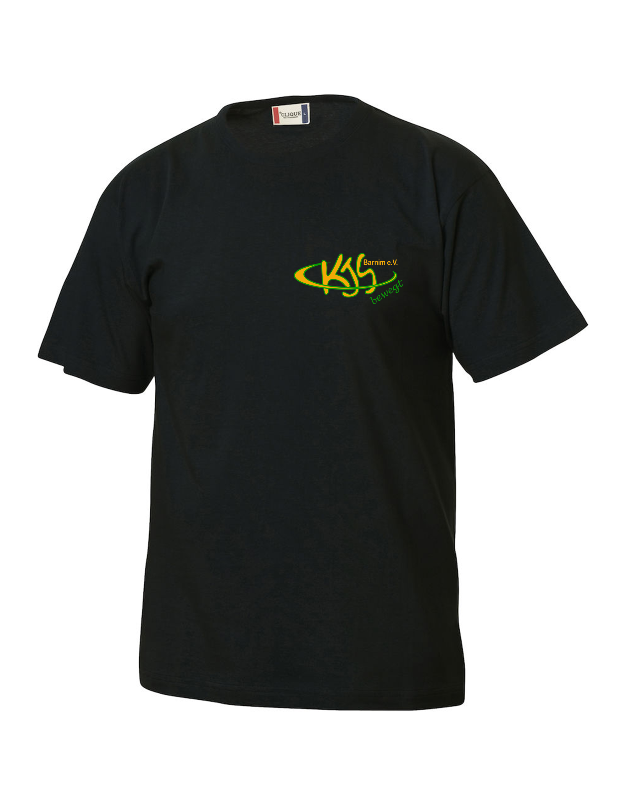 Kinder T-Shirt schmal geschnitten in weicher Baumwollqualität mit Nackenband, Seitennähte, Rippe mit Elasthan am Kragen.