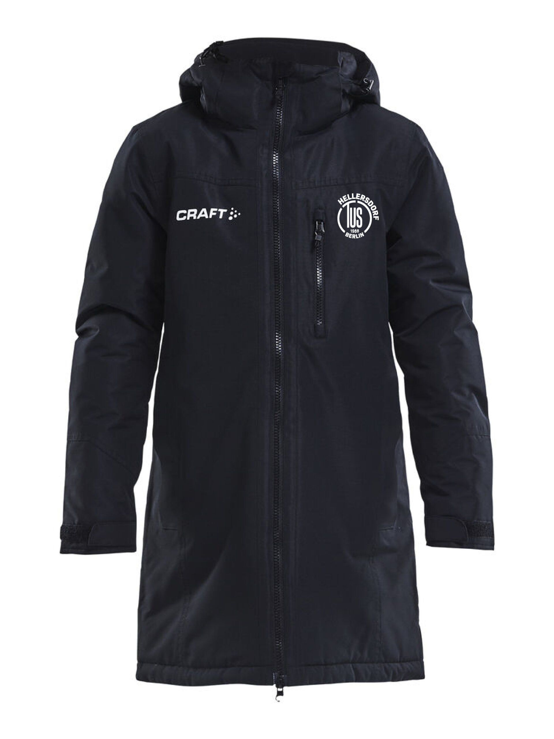 Wattierte, lange Jacke mit strapazierfähigem Außenmaterial, die sich ideal zum Aufwärmen bei Kälte oder als warme Jacke für Mitarbeiter, Helfer und Spieler auf der Bank eignet. • WP 3000 / MVP 3000 • 2-Wege-Reißverschluss • Abnehmbare Kapuze • 6 Taschen • Ärmelabschlüsse anpassbar • Kapuze über Kordelzug verstellbar