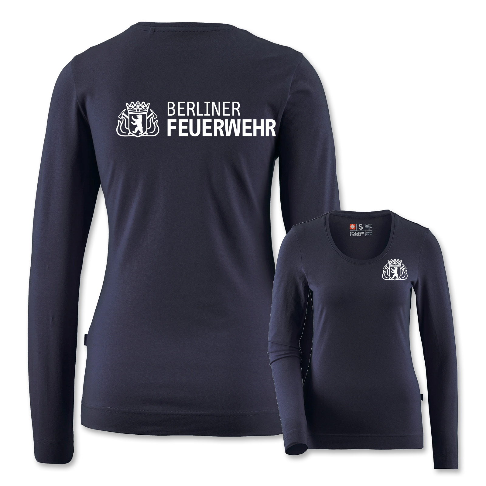 • Mit dem kompletten Logo der Berliner Feuerwehr auf der linken Brust und auf der Rückseite in weiß