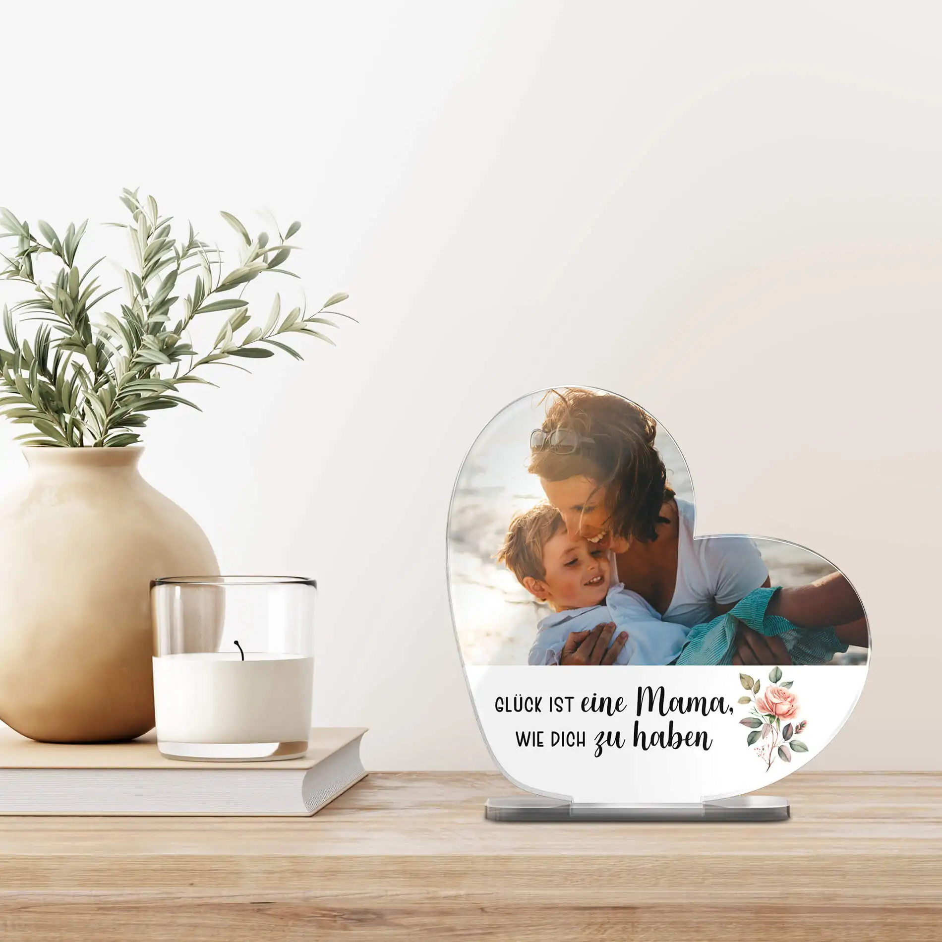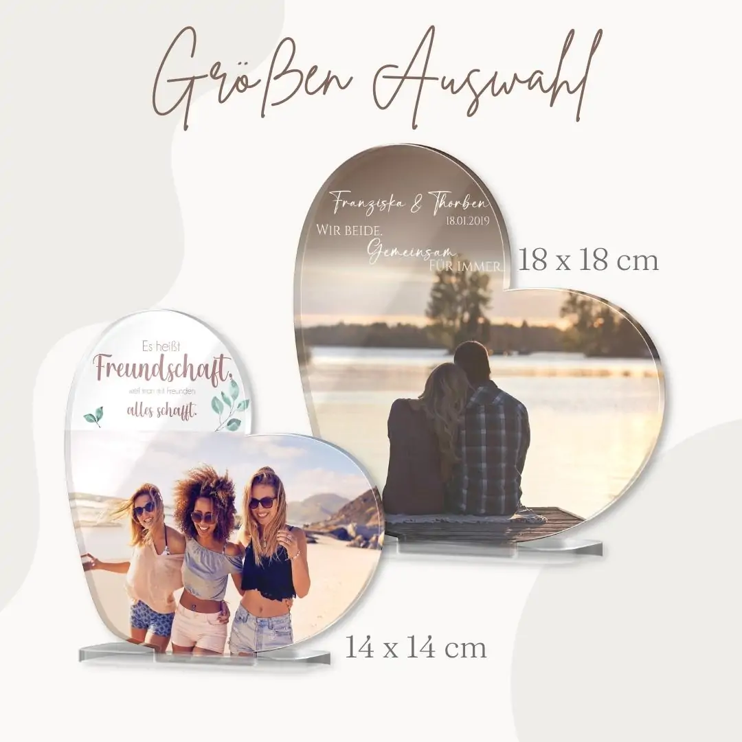 Verewige einen unvergesslichen Moment, einen besonderen Menschen oder einen geliebten Vierbeiner auf unseren schönen Standbildern aus hochwertigem Hochglanz Acrylglas. Bei uns kannst Du ein einzigartiges Erinnerungsstück für Dein Wohnzimmer, den Arbeitsplatz oder jeden anderen Ort Deiner Wahl ganz nach Deinen individuellen Vorstellungen erstellen. Fülle das Standbild mit Leben, indem Du ein Design auswählst und ein persönliches Foto einfügst. Anschließend kannst Du es nach Deinem Belieben mit einer persönlichen Widmung oder einem unserer unzähligen Motive verzieren. Deiner Kreativität sind keine Grenzen gesetzt. Das Bild liegt leicht geneigt auf der Seite, wodurch es bei Lichteinstrahlung eine hübsche Spiegelung aufweist. Auch im Dunkeln kannst Du dich von Deinem Standherz begeistern lassen, indem Du dahinter eine Kerze anzündest, welche das Standbild im gemütlichen Kerzenschein leuchten lässt.