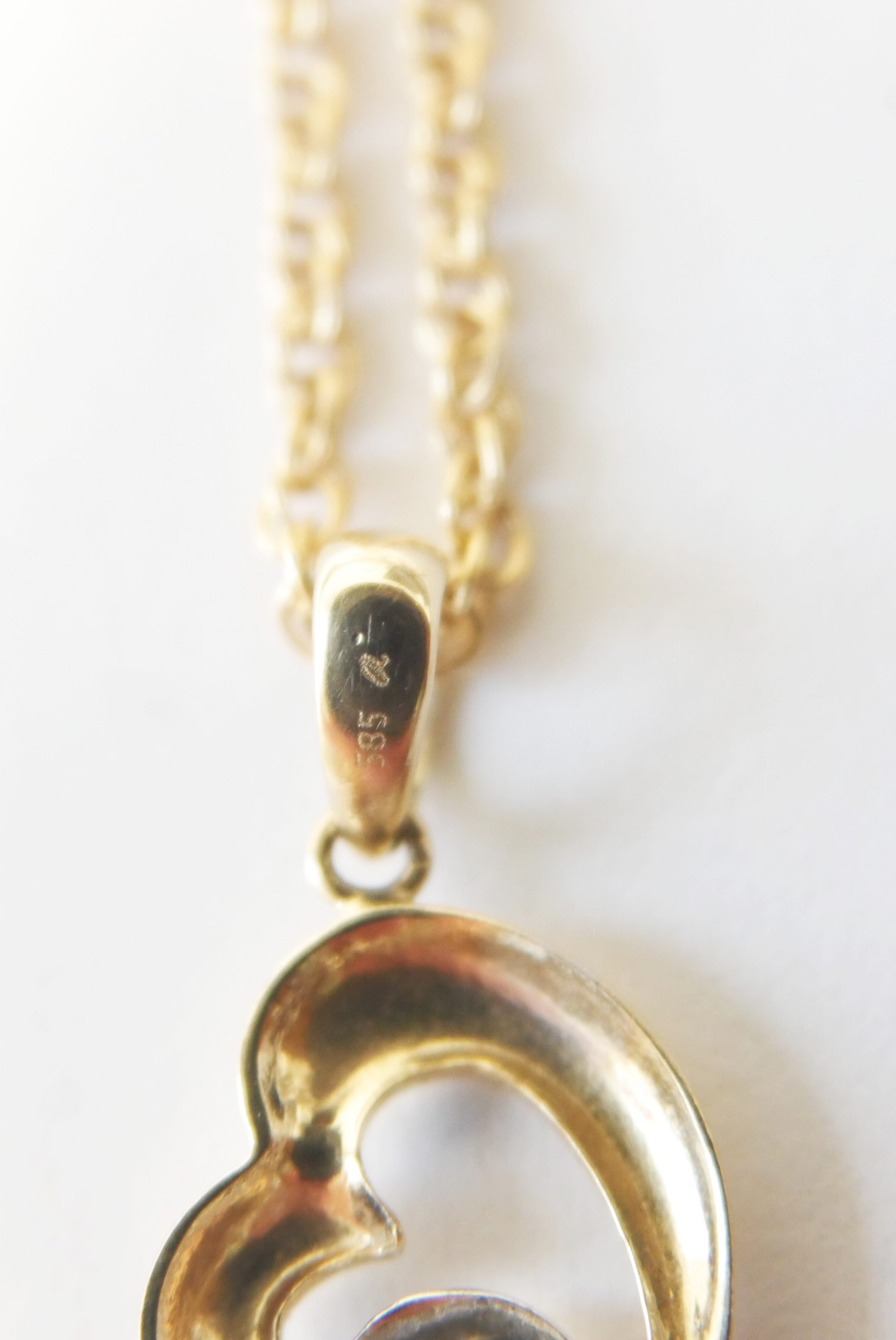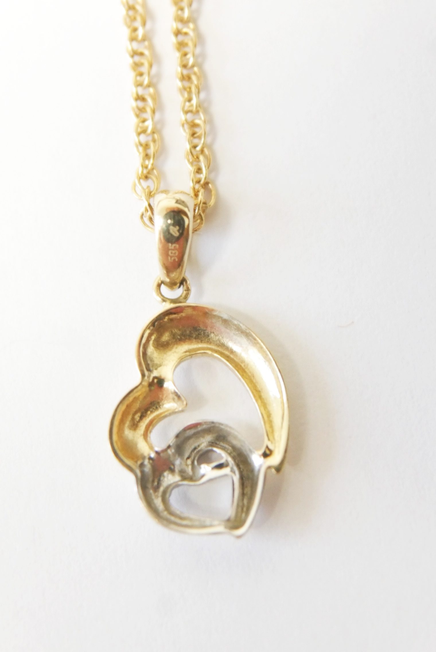 Ein kleiner schöner Doppelherz Anhänger für Liebende bei dem die Herzen ineinander verschlungen sind an einer feingliedrigen Goldkette mit einer Punze 585.