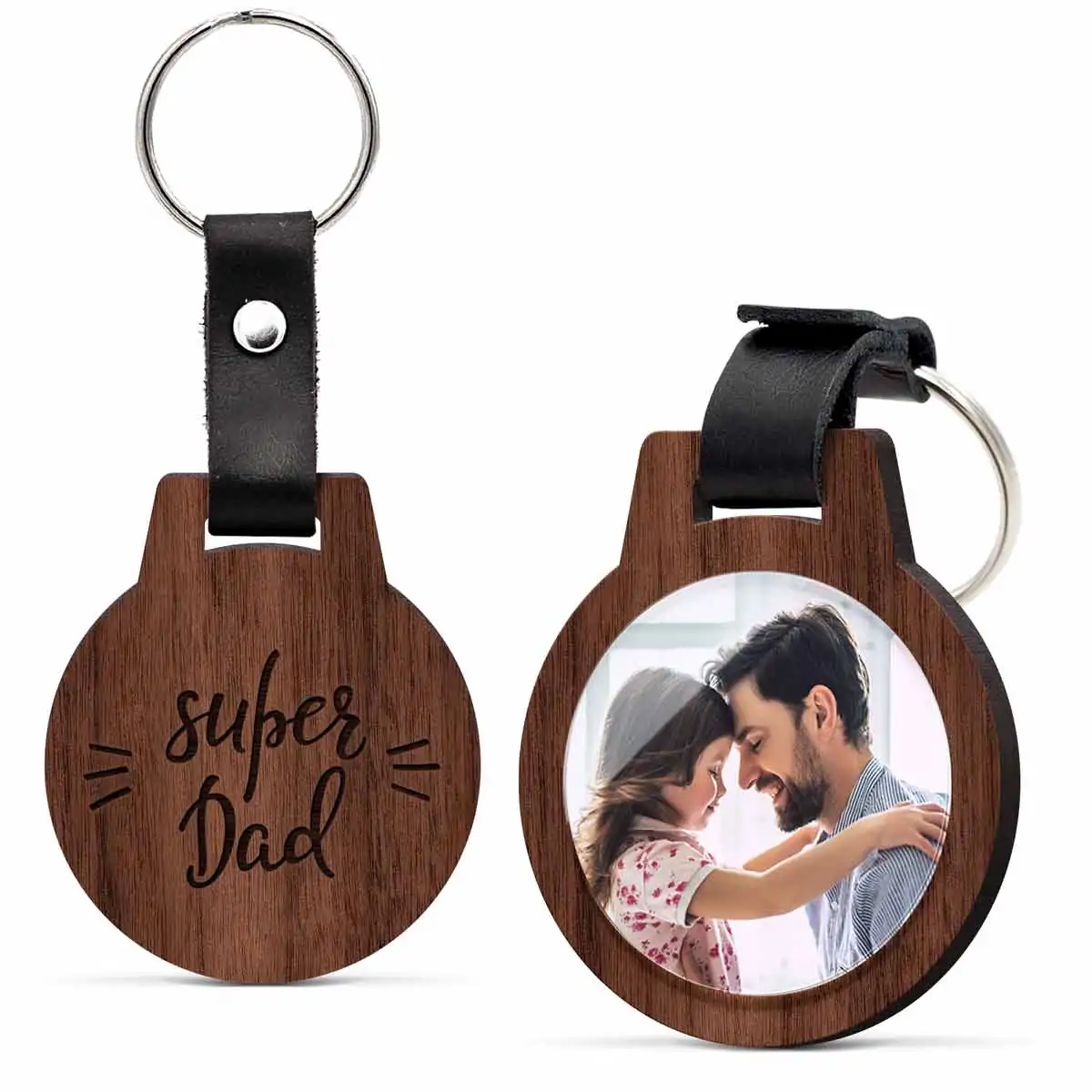 Schlüsselanhänger mit Fotodruck und Gravur aus echtem Holz