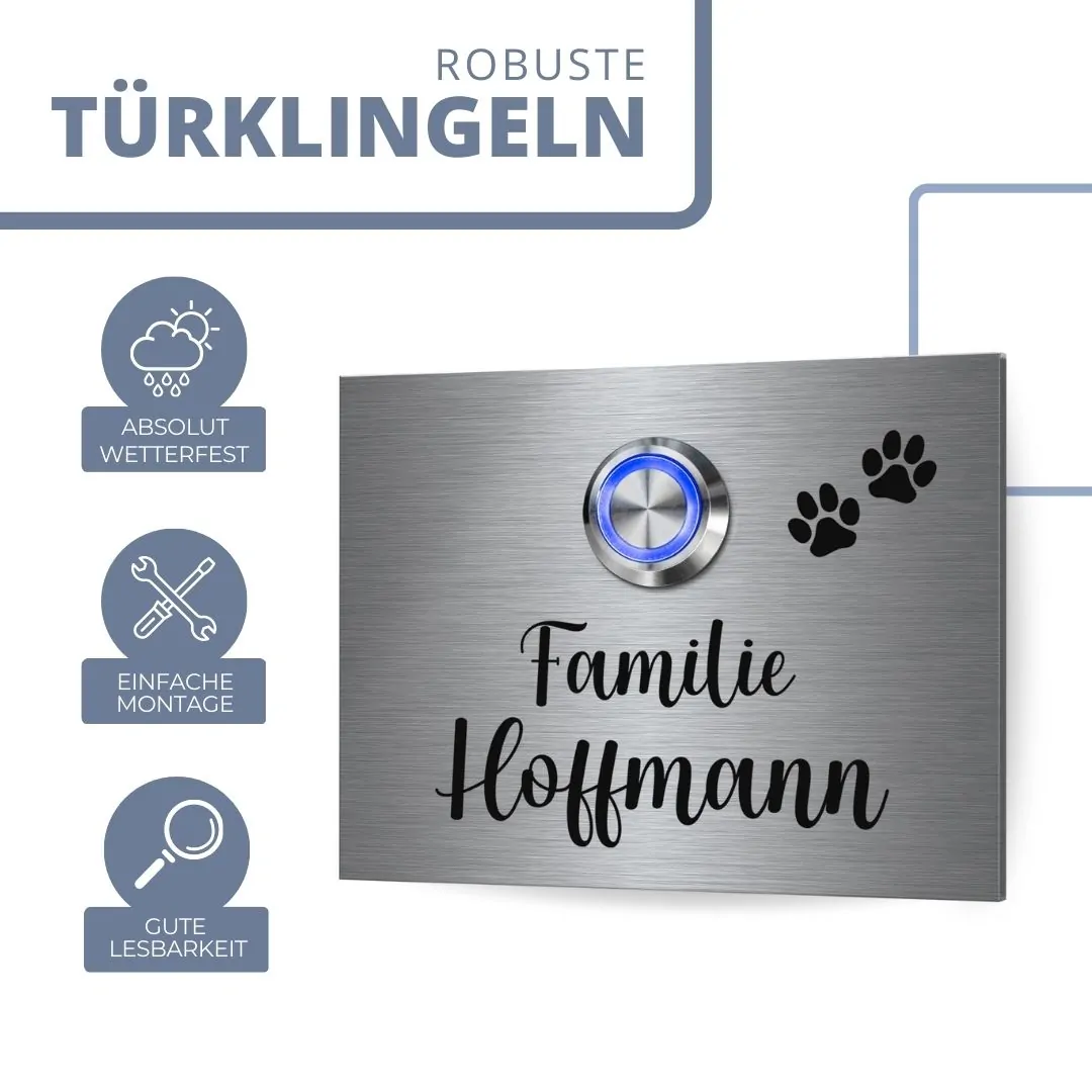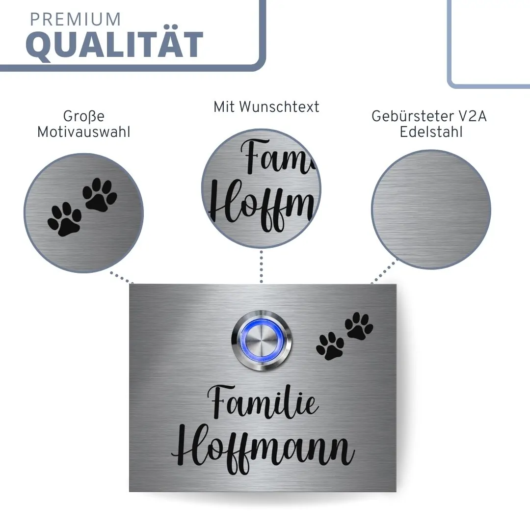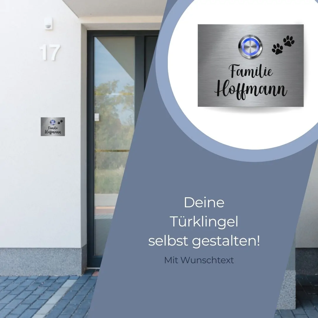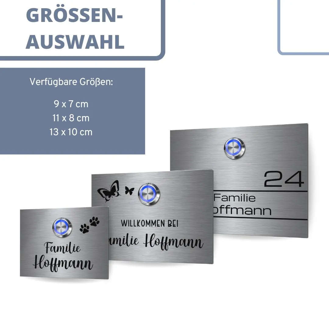 Türklingel aus Edelstahl mit Gravur und LED Klingelknopf / Modell Hoffmann ab 9×7 cm
