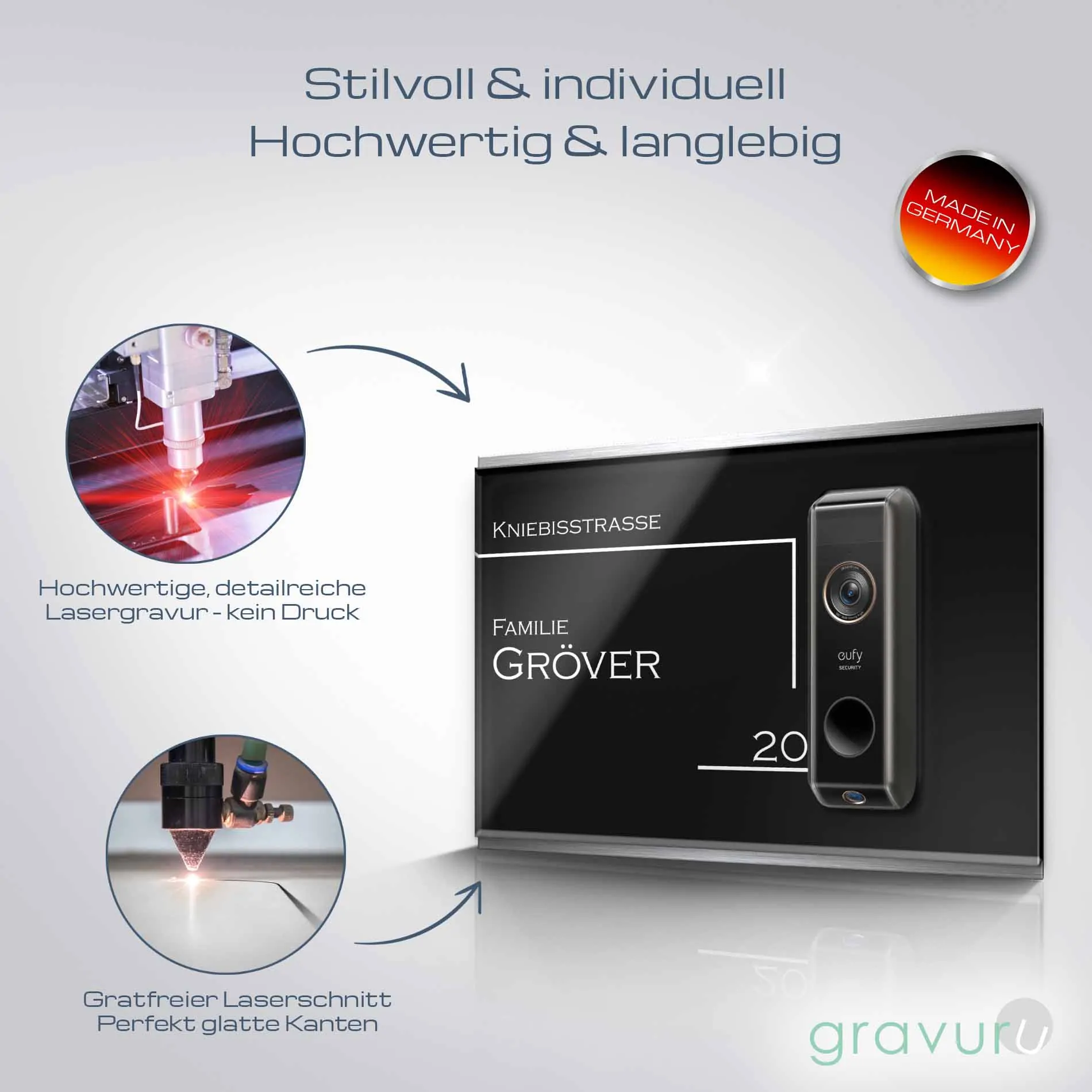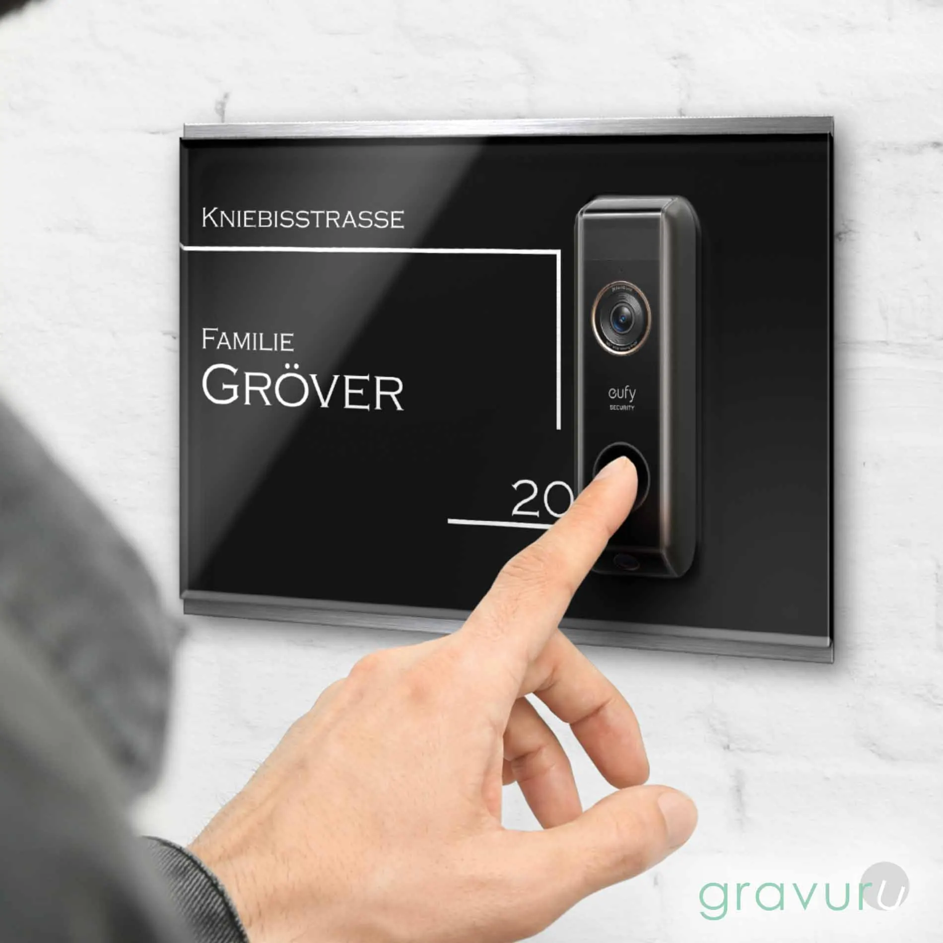 Edles Namensschild für die Funkklingel Eufy Video Doorbell Dual 2K mit schöner Gravur