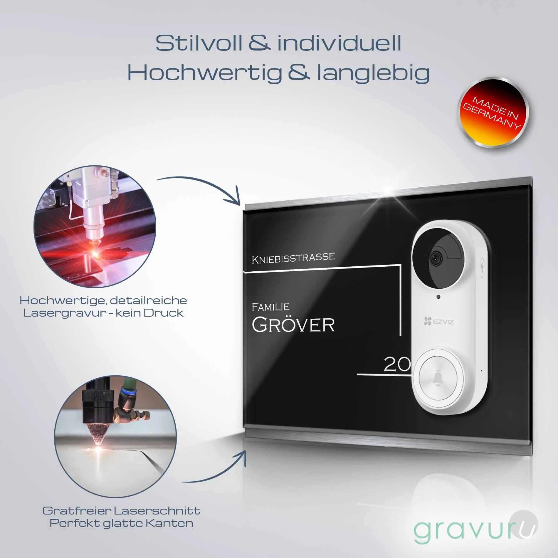 Edles Namensschild mit personalisierter Gravur für die EZVIZ DB2 PRO Funkklingel