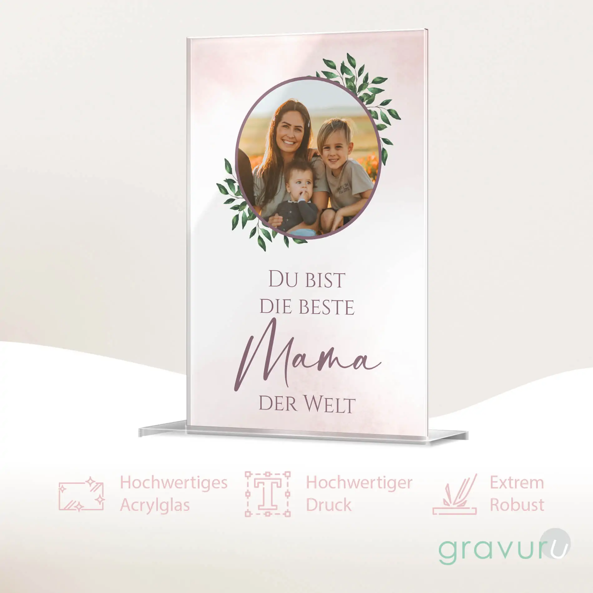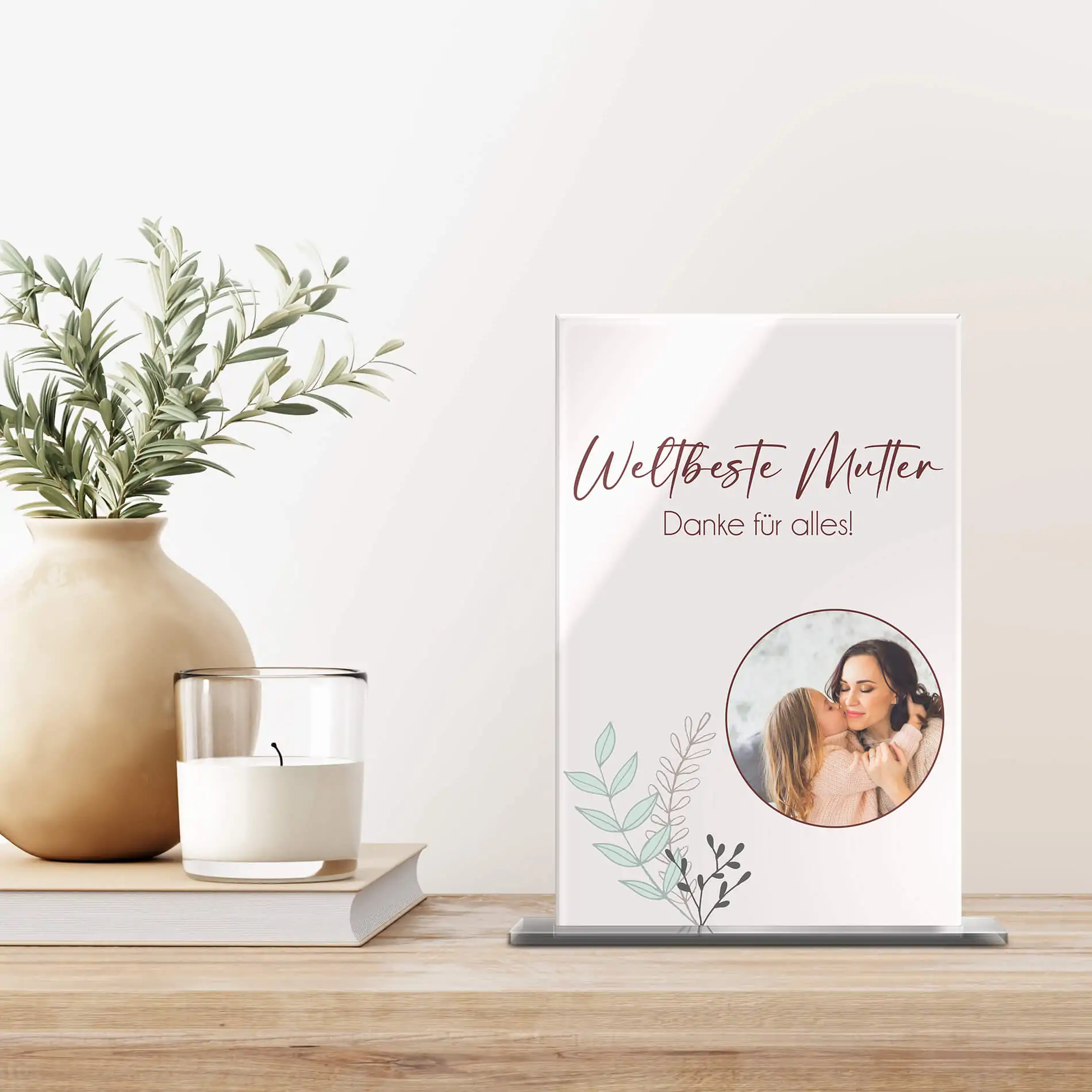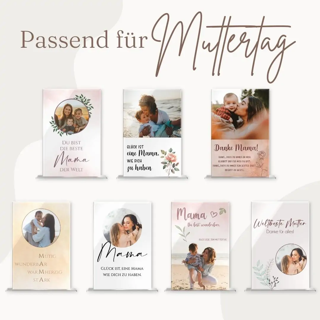 Material: Hochglanz Acrylglas mit UV Druck – Größe: 15 x 23 cm – Stärke: 5mm – inklusive Stand Fuß aus klarem Acrylglas (Einstecksystem)