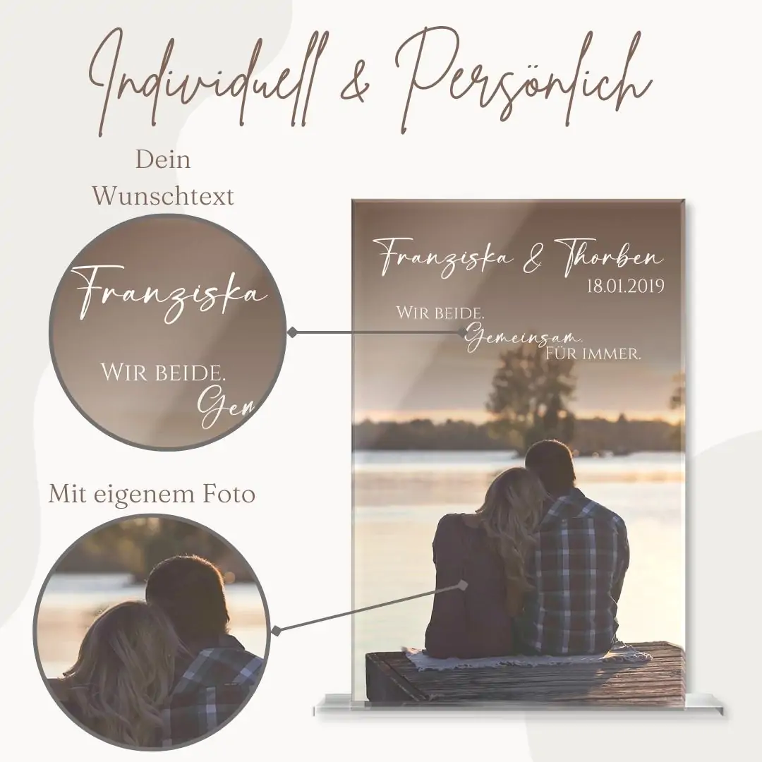 Tipp: Unsere Dekobilder zum Aufstellen eignen sich hervorragend als personalisierte Geschenkidee zum Valentinstag, zur Hochzeit, Verlobung oder natürlich auch einfach als Zeichen der Liebe zu jeder Gelegenheit. Mit diesem stimmungsvollen Geschenk ist Dir die Zuneigung Deiner Liebsten sicher.