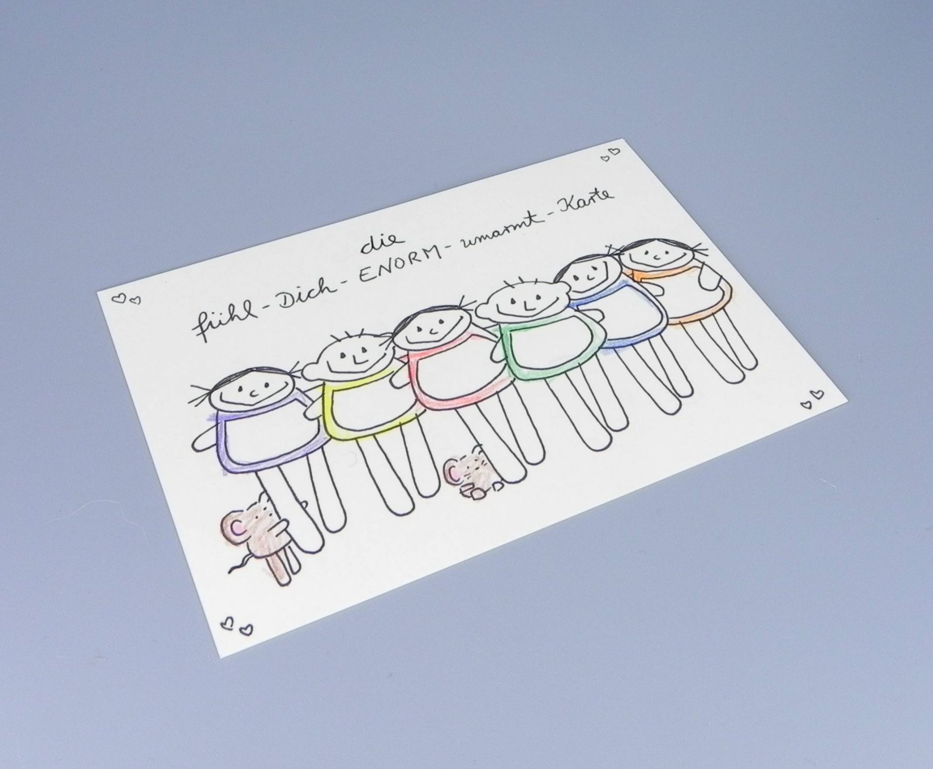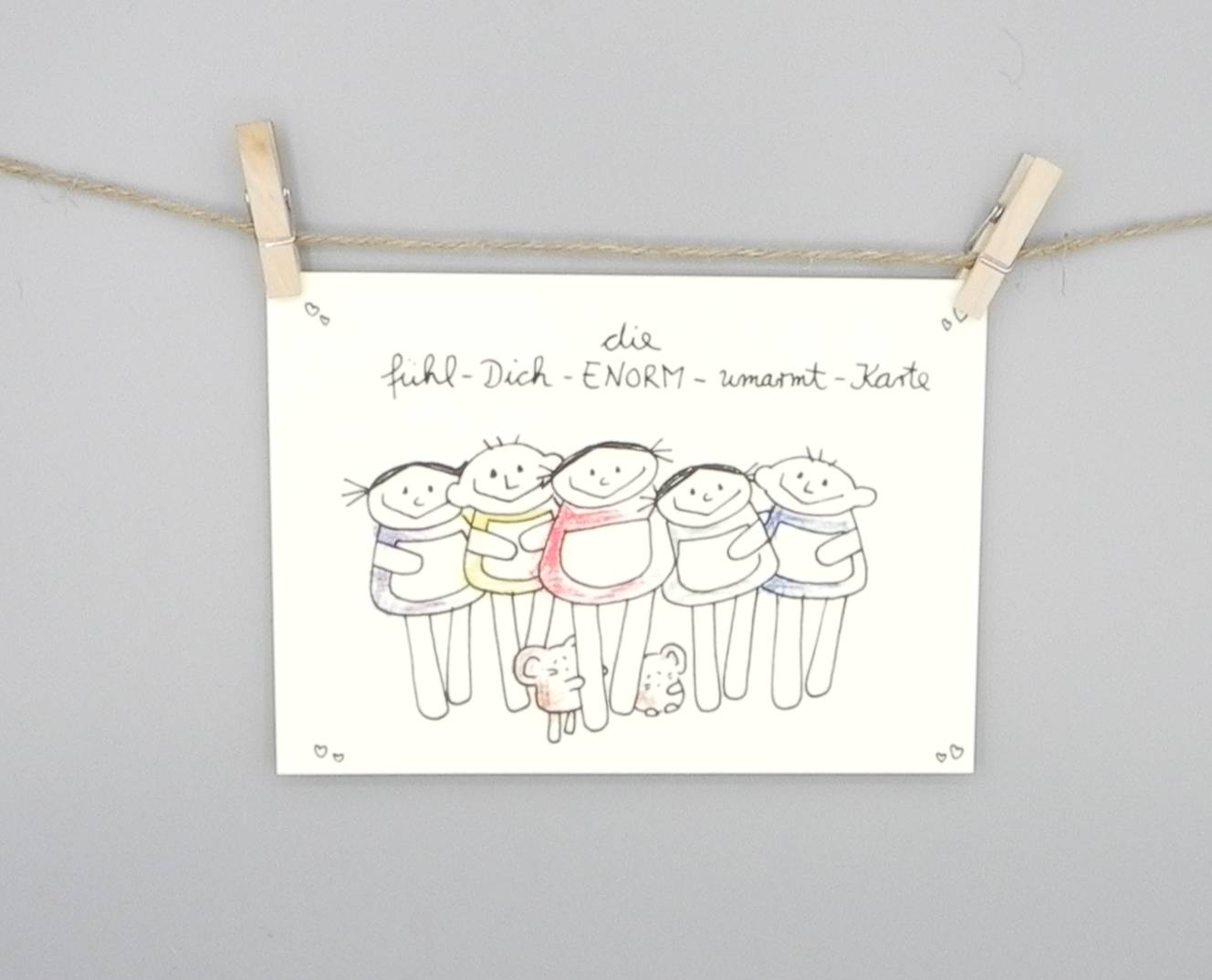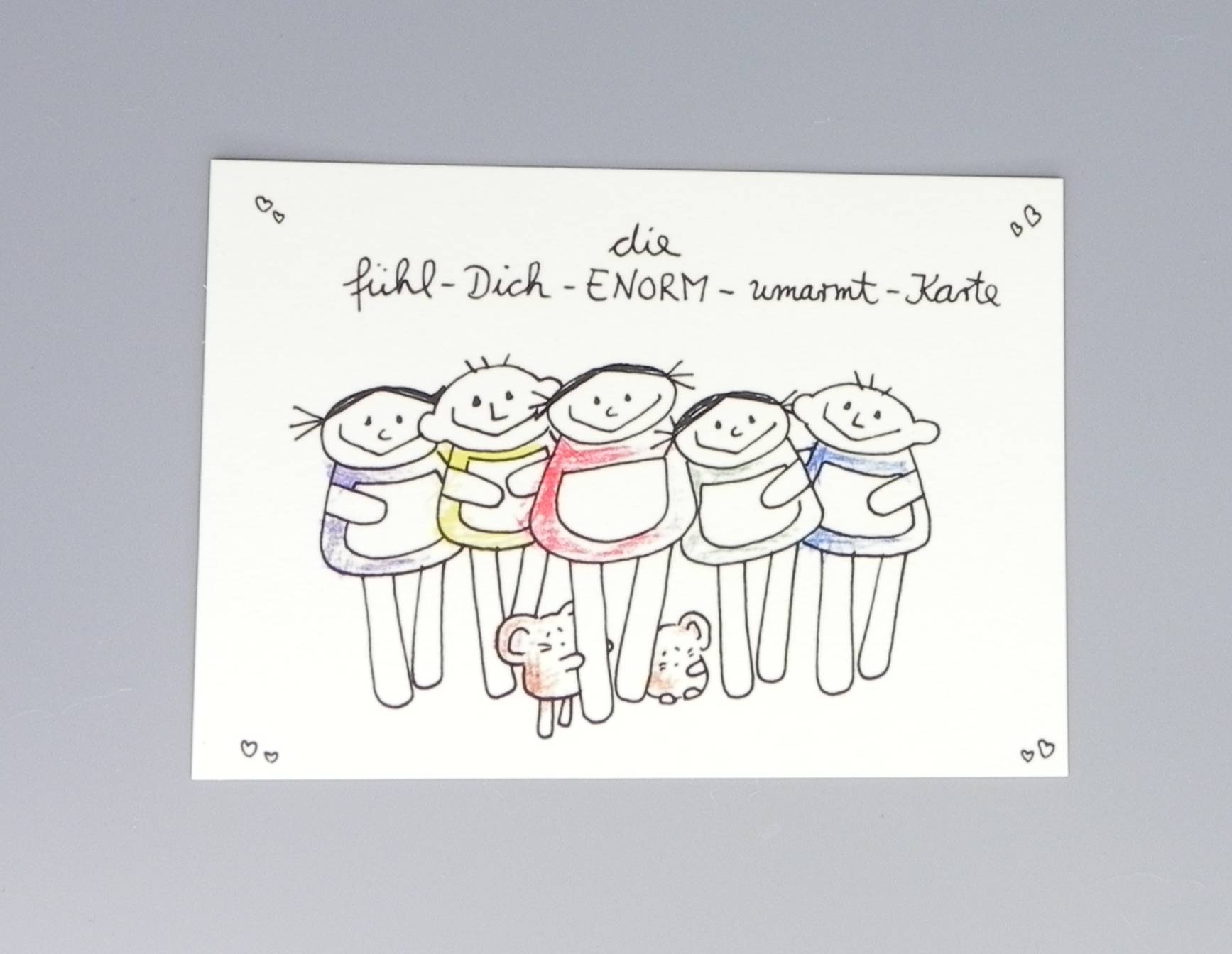 Mit diesen Mutmachkarten kannst Du lieben Personen virtuelle Umarmungen schicken. Noch ein paar schöne Worte dazu und ab in den Briefkasten. Es gibt so viele Situationen, in denen wir solche Nachrichten und gesten gut gebrauchen können. Social distancing, eine Trennung, Liebeskummer, Sorgen am Arbeitsplatz, Verlust einer lieben Person, ein burn out und so vieles andere mehr. Wächst jemanden mal alles über den Kopf, dann schicke ihr/ihm die Karte zur Aufmunterung und Unterstützung. Solche Gesten können ja schon so viel bewirken.