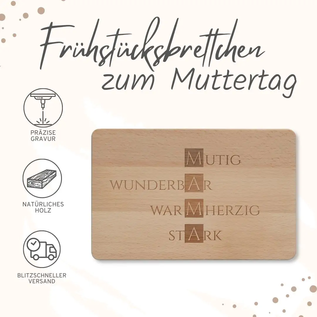 Überrasche Deine Mama mit einem schönen Holzbrettchen und lasse so jeden Morgen zu etwas ganz Besonderem werden.