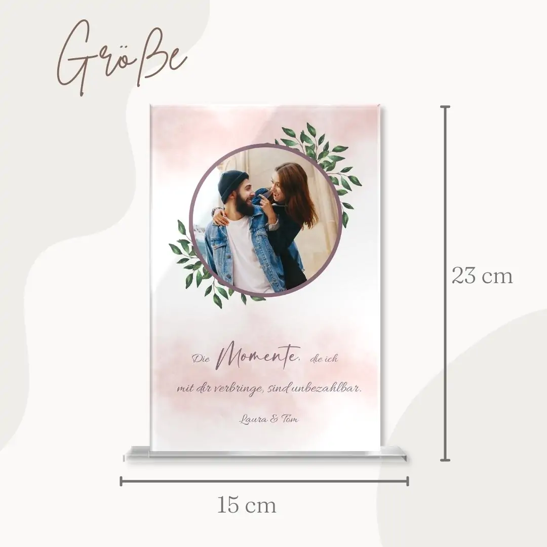 Material: Hochglanz Acrylglas mit UV Druck – Größe: 15 x 23 cm – Stärke: 5mm – inklusive Stand Fuß aus klarem Acrylglas (Einstecksystem)
