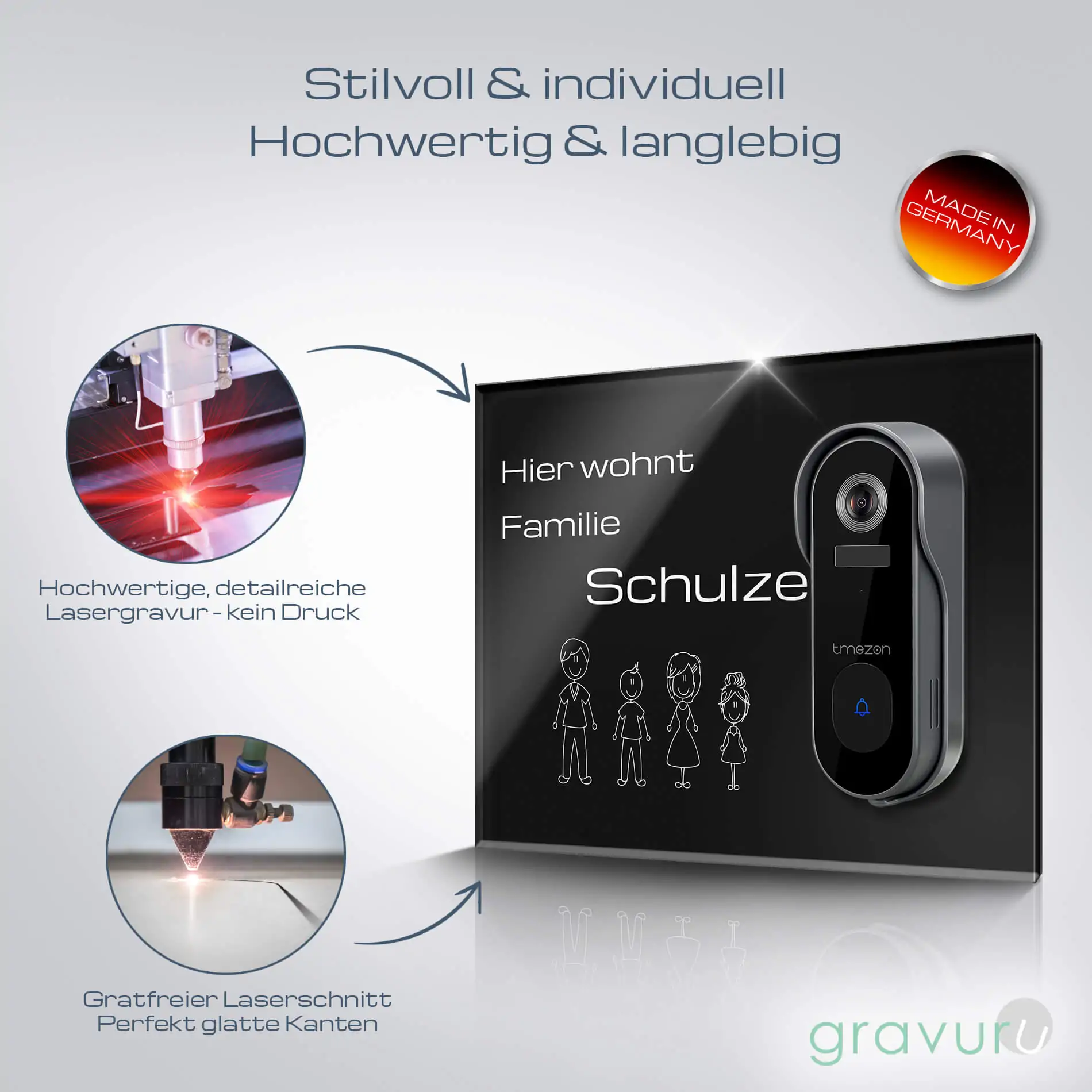 Schreibe die erste Bewertung für „Graviertes Funkklingelschild für die Tmezon Smart Home Klingel“