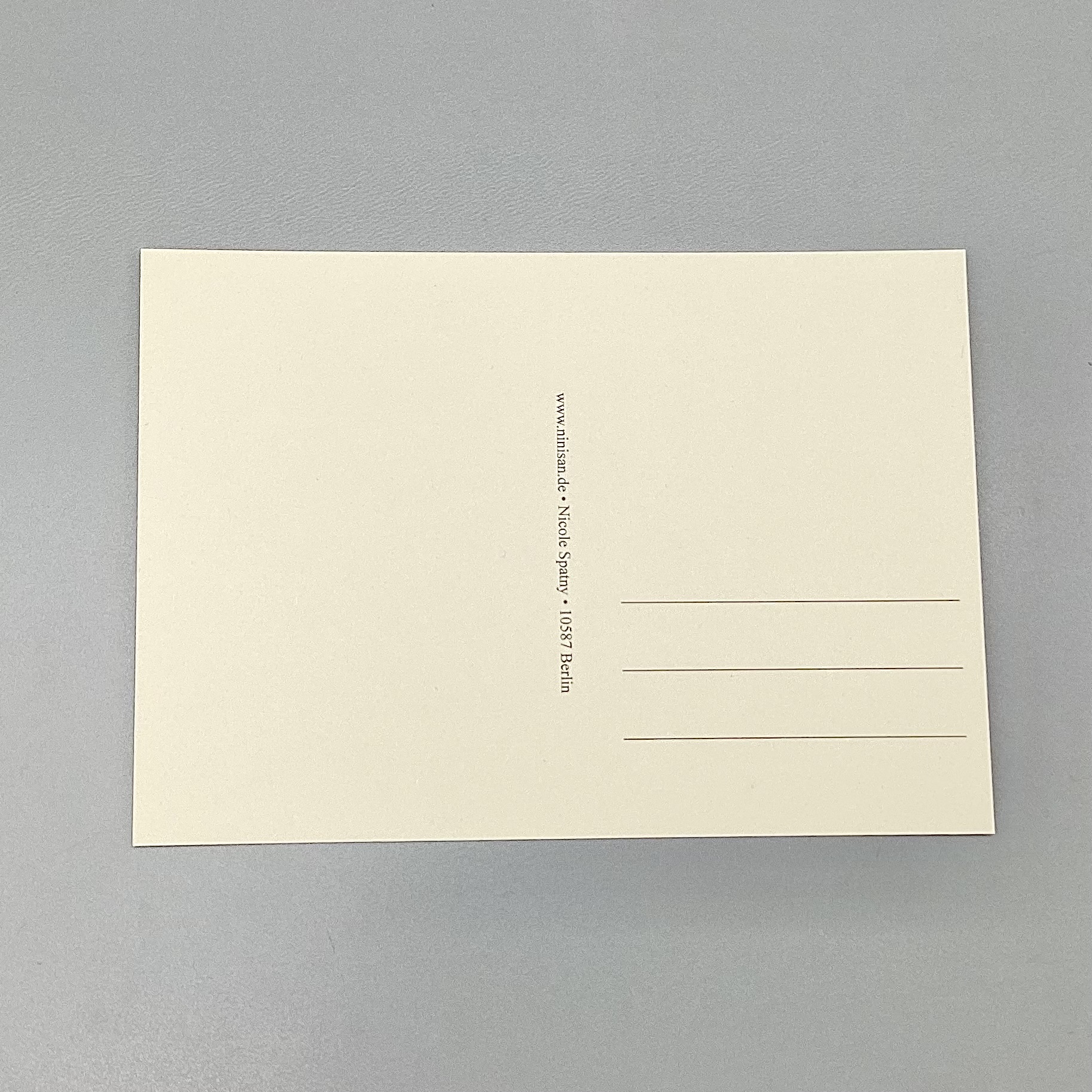 Grundfarbe der Postkarte ist cremeweiss mit bunter nini san Zeichnung.