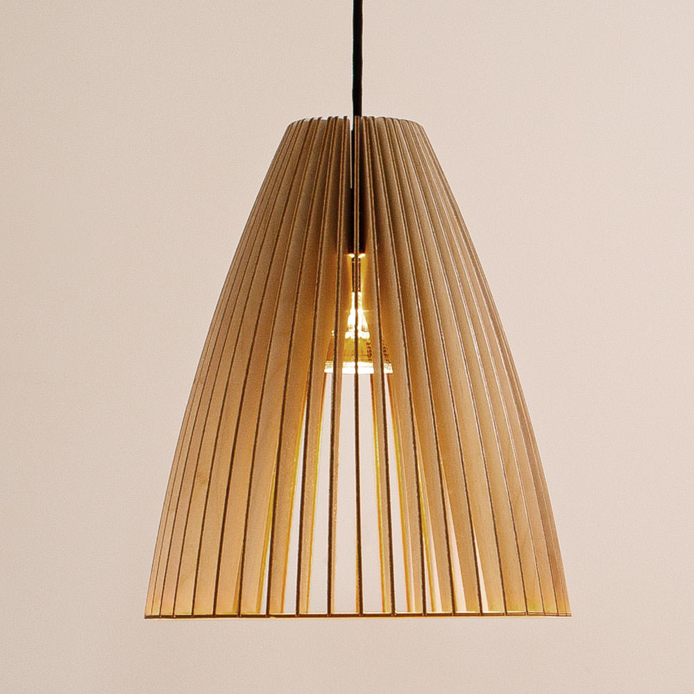 Die Holzleuchte TEIA des Labels IUMI ist ein Blickfang für jeden Raum. Die hochwertige Hängeleuchte wird per Laser aus Birkenholz geschnitten und sorgsam in Handarbeit veredelt. Die Hängelampen vom Iumi sind fein geschliffen und können bei Bedarf mit geeignetem Öl behandelt werden. Die farbigen Lampen sind mit einer Lasur auf natürlicher Basis versehen, welche zugleich wasserabweisend ist. Die Farben sind auch für Kinderspielzeug geeignet – also absolut unbedenklich. Die weiße Holzlampe ist lackiert.
