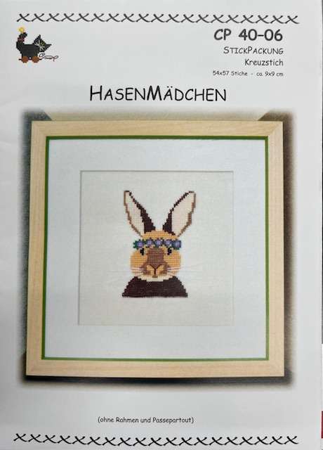 Die Stickpackung „Hasenmädchen“ von C.Papesch wird mit Stoff, Garn, Nadel und Anleitung geliefert.