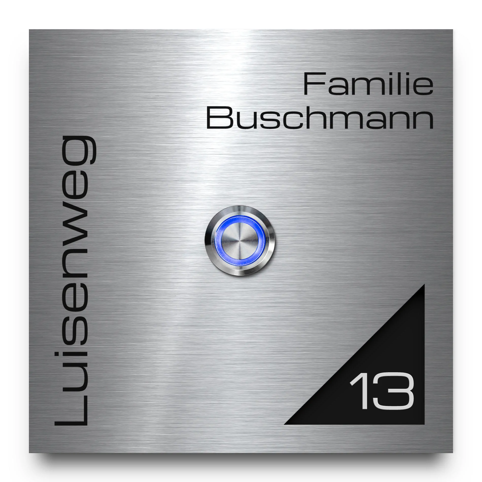 Türklingel aus Edelstahl mit Gravur und LED Taster / Modell Buschmann-A 12×12 cm