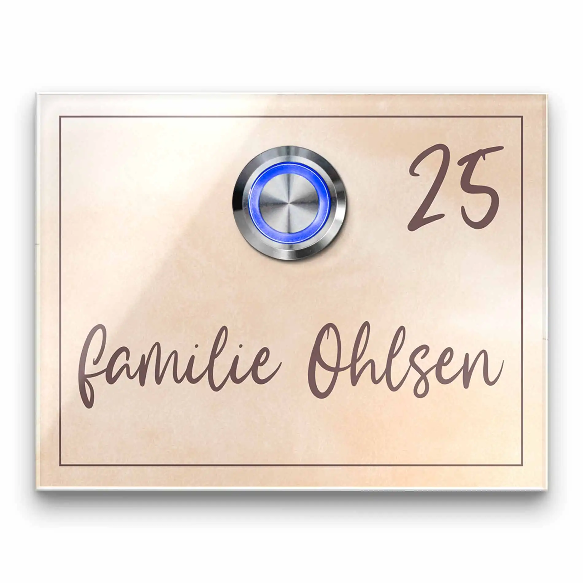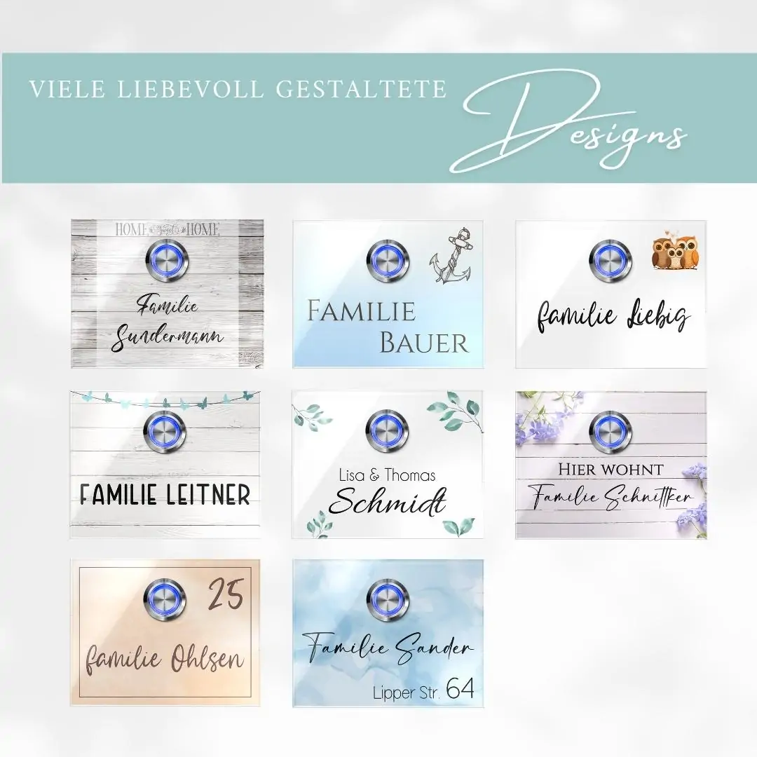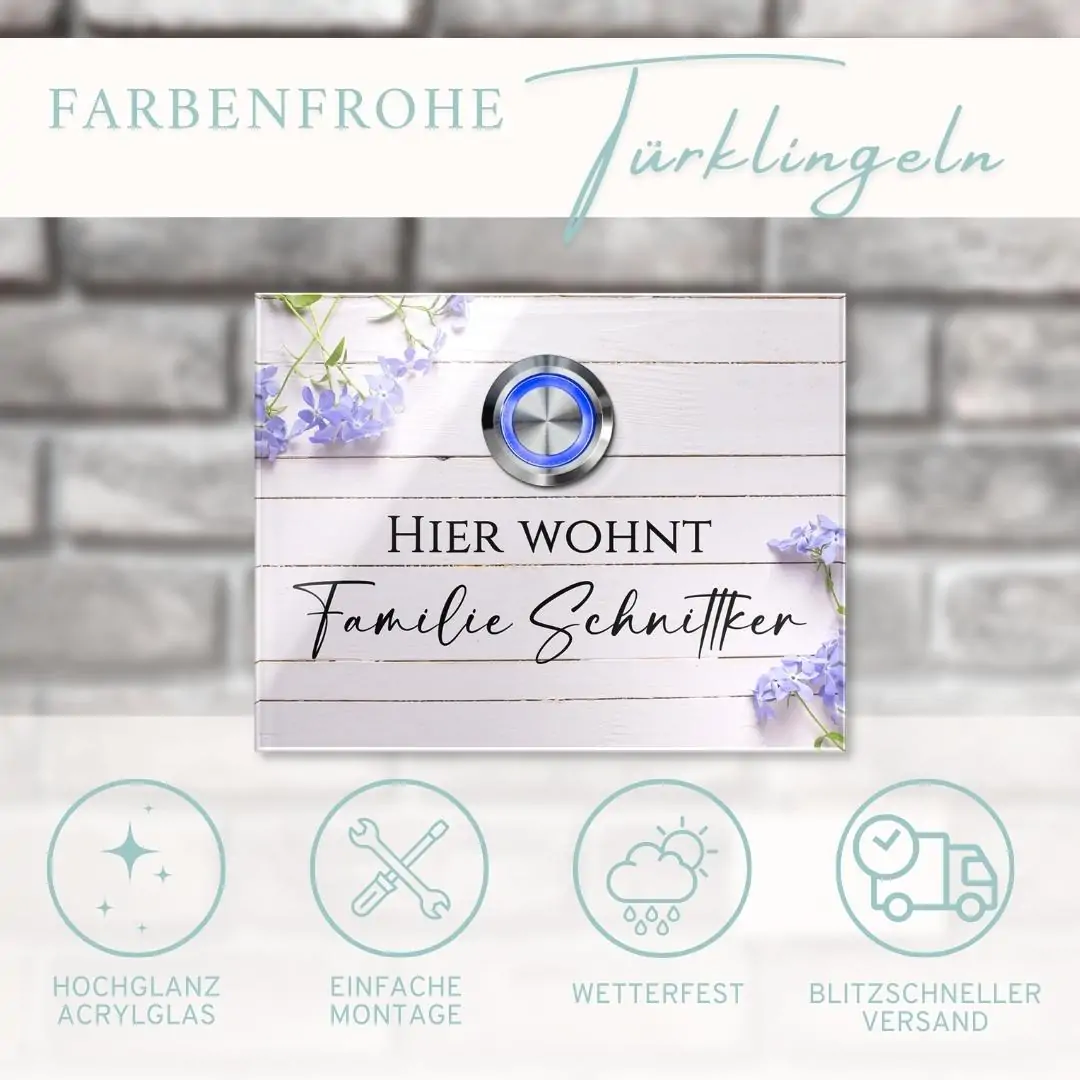 Türklingel Acrylglas mit Namens-Druck | LED-Taster / Modell Hoffmann-UV-2 9×7 cm