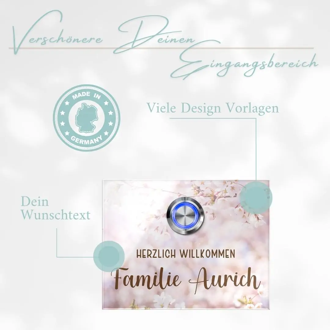 So individuell wie Dein Eigenheim ist, so individuell sollte auch Deine Klingel sein! Gestalte Dir bei uns ein hochwertiges Klingelschild aus schönem GS Hochglanz Acrylglas und massivem VA2 Edelstahl mit einem modernen LED Klingelknopf ganz nach Deinem persönlichen Geschmack. Mit einem Wunsch-Druck Deiner Wahl und der Auswahl eines einzigartigen Designs erstellst Du Dir bei uns im Handumdrehen einen echten Eyecatcher für die Hauswand. Wir setzen sowohl beim Einkauf unserer Materialien als auch bei der Verarbeitung ausnahmslos auf erstklassige Qualität. Mithilfe unseres gesonderten Druckverfahrens kann die edle Acrylglasplatte mit ihrer einmaligen Hochglanzoptik überzeugen und wird durch das robuste Edelstahlelement harmonisch abgerundet. Wähle selbst, ob es eine klassische Türklingel in Schwarz/Weiß oder lieber etwas extravaganteres in moderner Marmor Optik sein soll und personalisiere sie nach Deinen Vorlieben. Alle unsere Platten werden millimetergenau und sauber geschnitten. Der UV Druck erfolgt grundsätzlich rückseitig und spiegelverkehrt. Dadurch erhältst Du eine Klingel, die zusätzlich mit ihrer Robustheit überzeugt und absolut kratzfest sowie witterungsbeständig ist.
