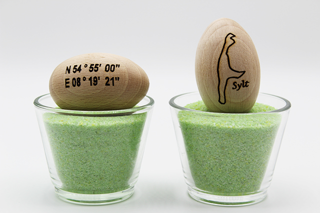 Du kannst das Sylt-Ei hinlegen oder aufstellen, ins Osternest legen oder stellen, zum Suchen verstecken oder auch ein maritimes Osterfest gestalten. Welche Seite du vom Ei zeigen oder sehen möchtest entscheidest du selbst. Das Ei zeigt auf der einen Seite die Insel-Silhouette Sylt und den Namen deiner Lieblingsinsel und auf der anderen Seite vom Ei sind die Koordinaten deiner Lieblingsinsel dargestellt.