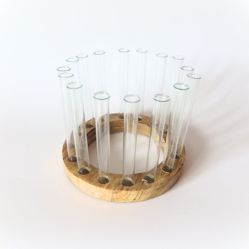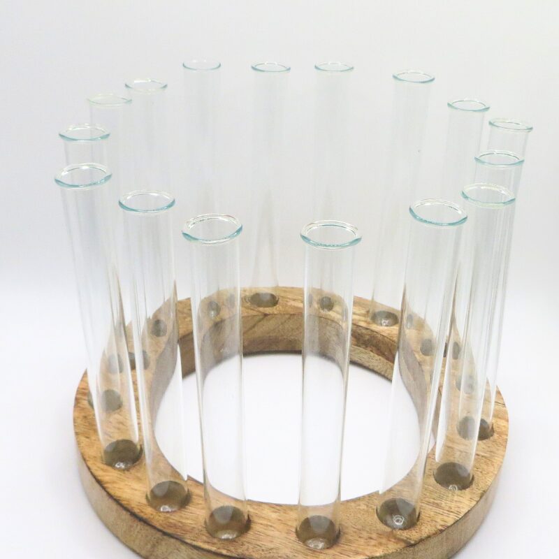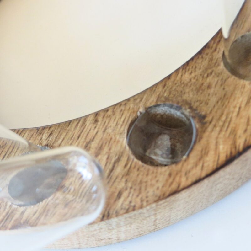 Der Holzkranz ist ein Naturprodukt, Abweichungen in Struktur und Farbe sind rein natürlich und kein Reklamationsgrund. Durch Kälte oder Wärme kann sich das Holz auch leicht verziehen, ausdehnen oder schrumpfen. Sollten die Reagenzgläser dadurch keinen festen Stand in den Löchern haben, sind jedem Kranz kleine Strips beigelegt, die in die Löcher eingelegt werden können. So bekommen die Gläser den nötigen Halt.