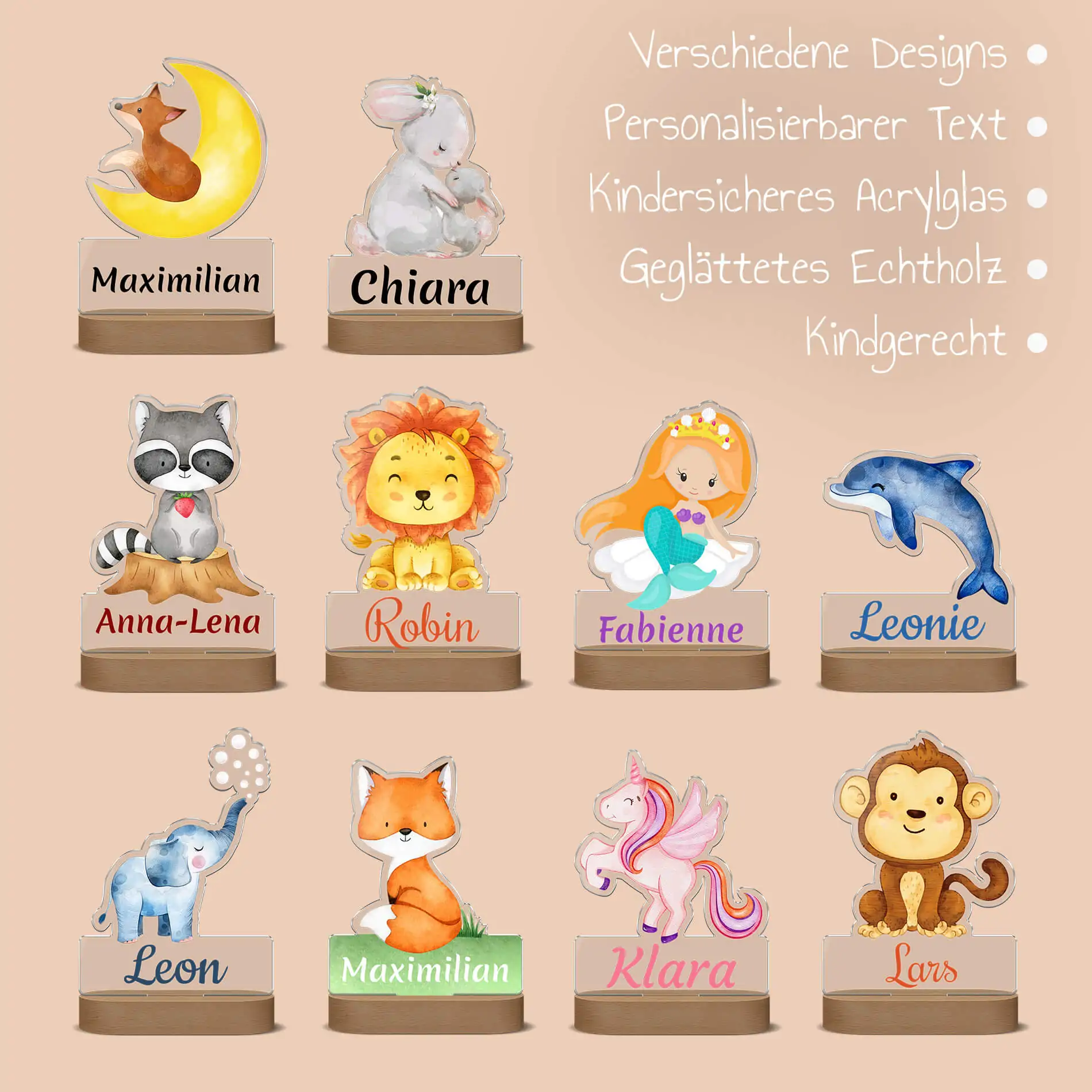Süße individuelle Lampen passen darauf auf, dass die Monster unterm Bett nachts keine Chance haben. Egal ob Affe, Delfin oder Dino – hier findest Du viele leuchtende Freunde. Und das beste? Unsere Nachtlampen sind personalisierbar. Du kannst sie um einen Text ergänzen (z.B. Name und Geburtsdatum). Dadurch sind sie das perfekte Geschenk, beispielsweise für einen Kindergeburtstag, zur Taufe oder auch direkt zur Geburt. Zudem bringen sie die LED-typischen Vorteile mit: das Licht ist dimmbar, so dass es für jeden Geschmack eingestellt werden kann, und kommt in einer Reihe schöner, bunter Farben. Da ist für kleine und große Kinder das Richtige dabei! Auch schön z.B. als Stilllicht, Schlummerlicht oder Schreibtischdeko.