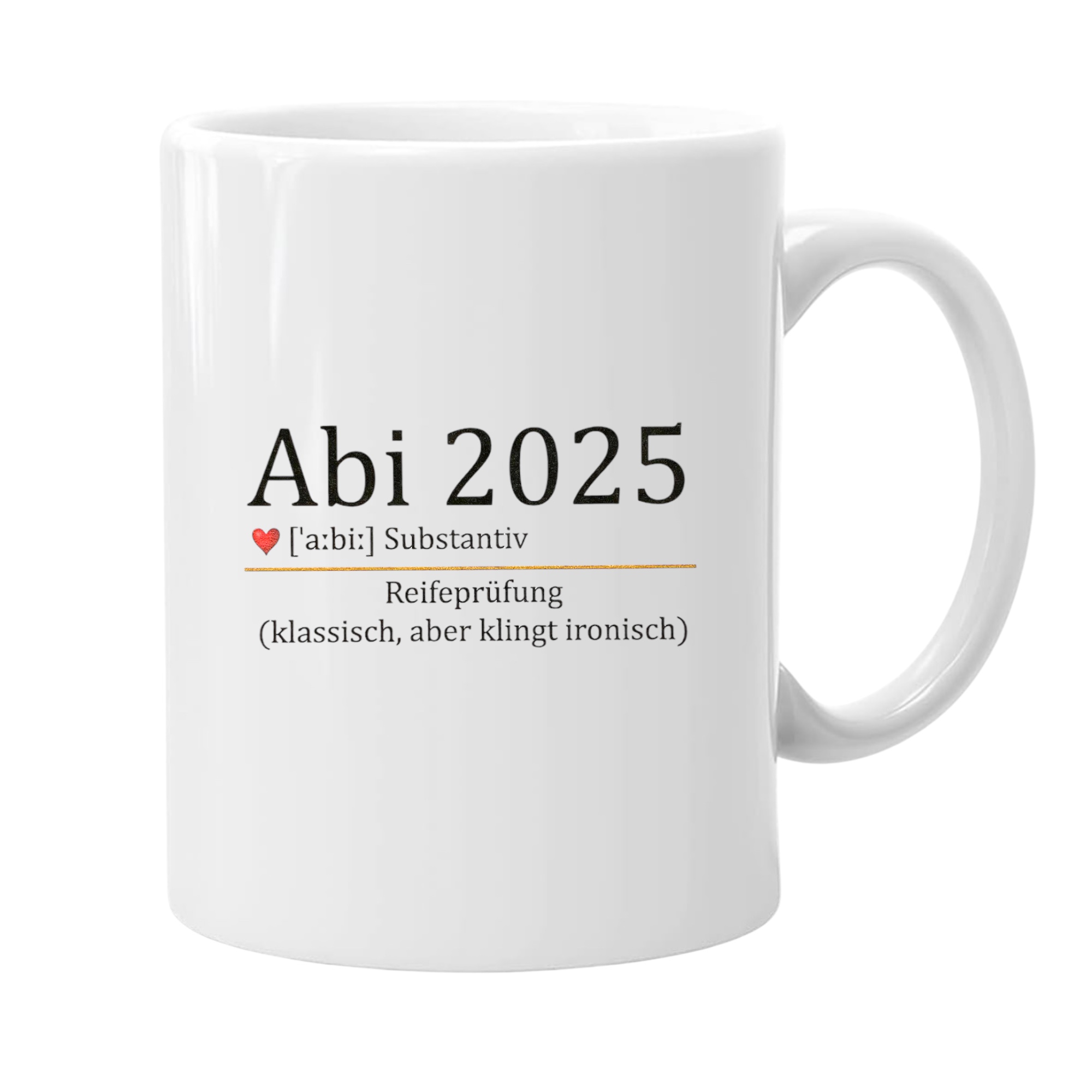 Lustige Kaffeetasse ‚Abi 2025‘ Reifeprüfung (klassisch, aber klingt ironisch), 330ml, Spülmaschinenfest, Keramik, Tasse Männer und Frauen