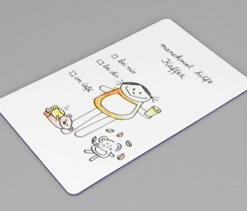 Die Kästchen sind zum Ankreuzen. Hier kannst Du eine liebe Person – bei mir – bei dir – im Café – einladen. Füge beim Café einfach noch den Namen, Uhrzeit und Datum handschriftlich dazu. So wird es noch präzieser.