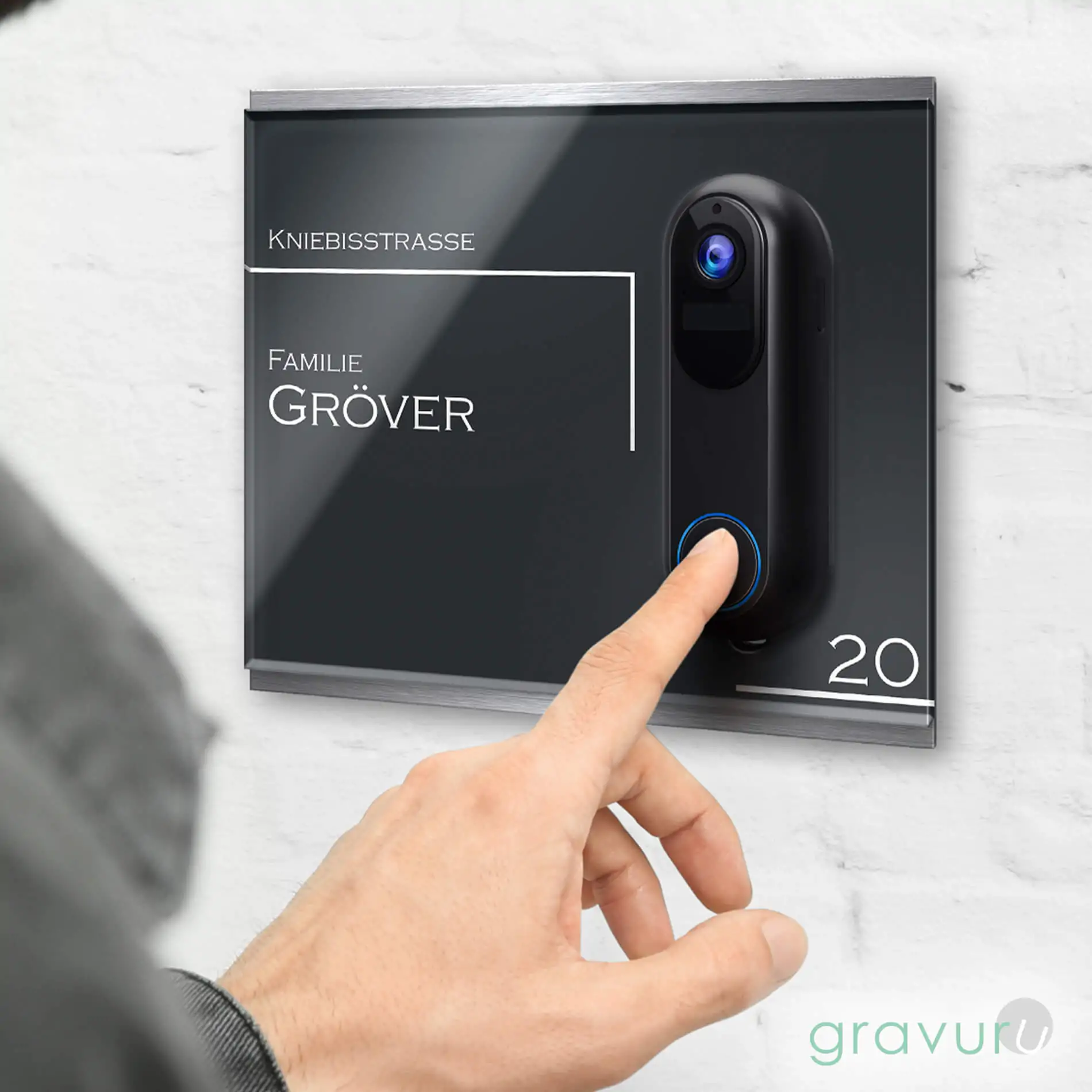 Moderne WP Pro V1 Klingel Platte graviert mit Namen und Motiv