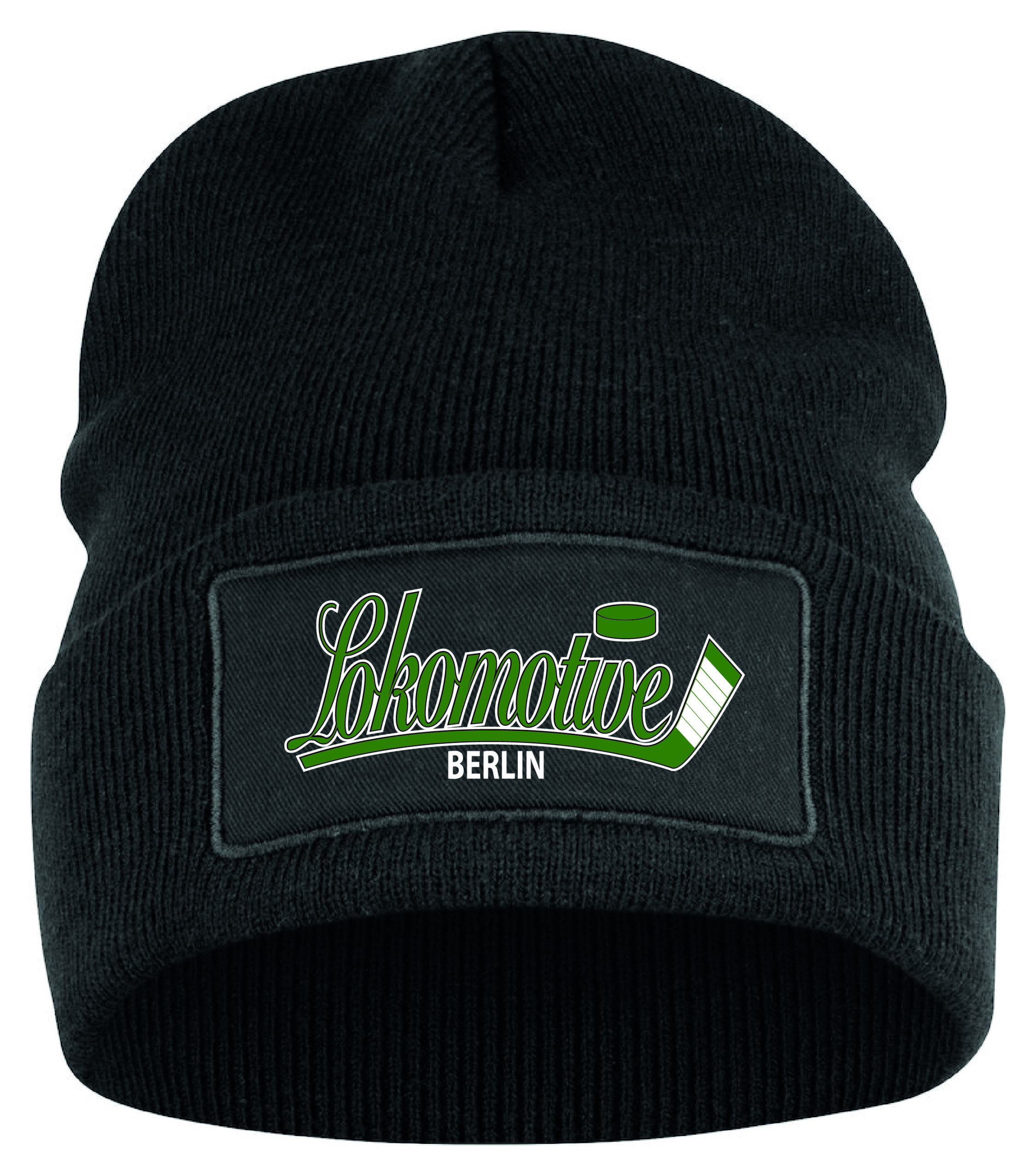 Strickmütze mit Umschlag. Bedrucktes Patch mit Vereinslogo. Patch-Maße: 10 x 5 cm.