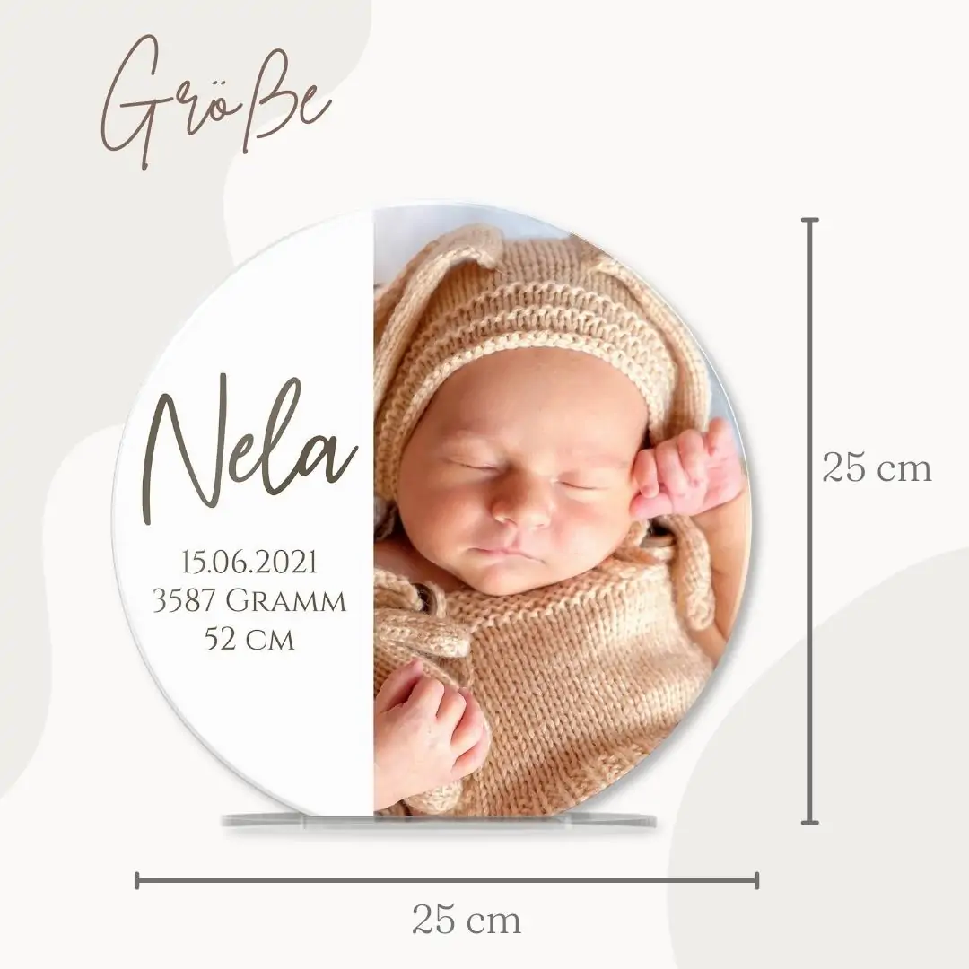 Alle unsere Standbilder werden in der hauseigenen Produktionsstätte zugeschnitten und mittels hochwertigen UV Drucks rückseitig bedruckt. Gegenüber dem Foliendruck überzeugt unser Druck mit seiner überdurchschnittlichen Haltbarkeit und ist absolut kratzfest. Damit eignet sich der Dekoartikel sogar für den Außenbereich. Bitte beachte, dass sich die Ränder minimal (bis zu 1,5 mm) verschieben können, da beim UV Druck ein Sicherheitsabstand eingehalten werden muss. Das elegante Standbild in Kreisform wird inklusive Stand Fuß geliefert und kann dank des simplen Einstecksystems beliebig aus der Halterung genommen und wieder reingesteckt werden. So kannst Du dein liebevoll designtes Unikat beispielsweise bei der nächsten Geburtstagsfeier direkt zum Bestaunen in die Runde geben.