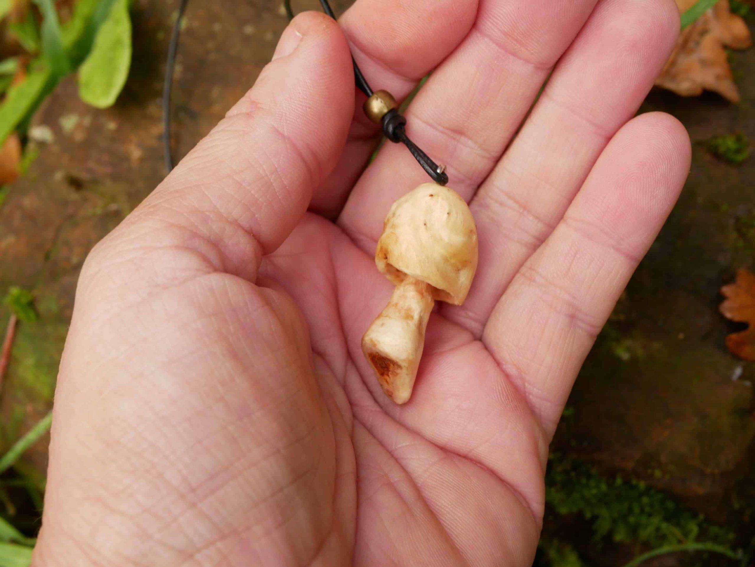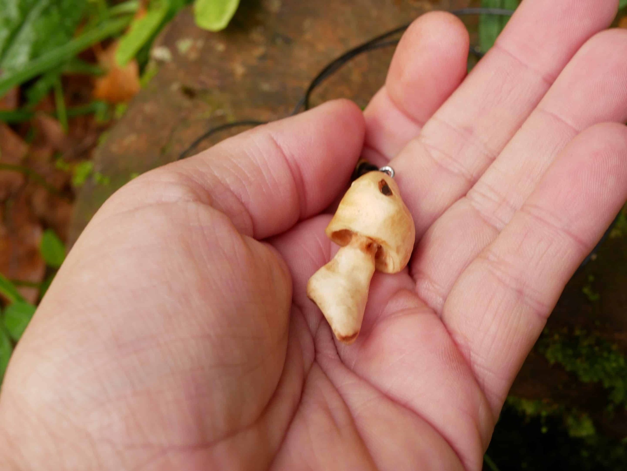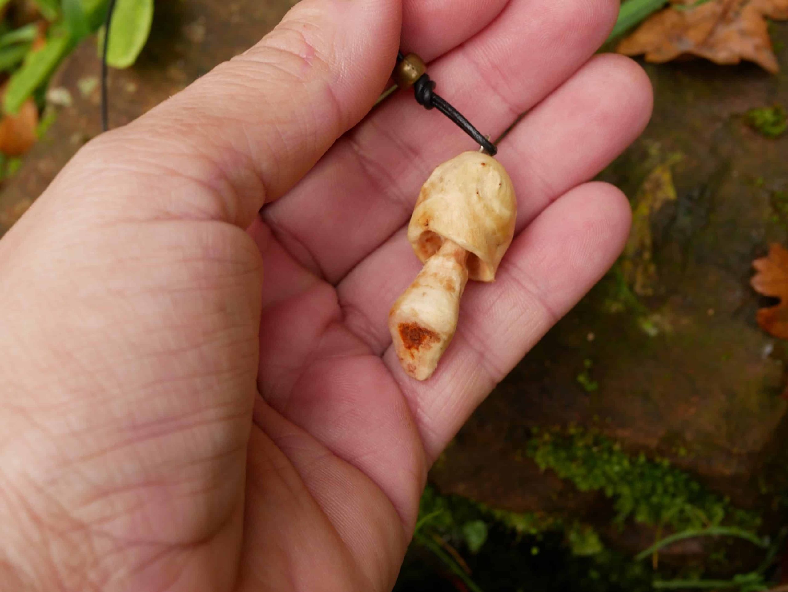 Eine Baumperle die zu einem Pilz geschnitzt wurde. Handmade. Handgeschnitzt.