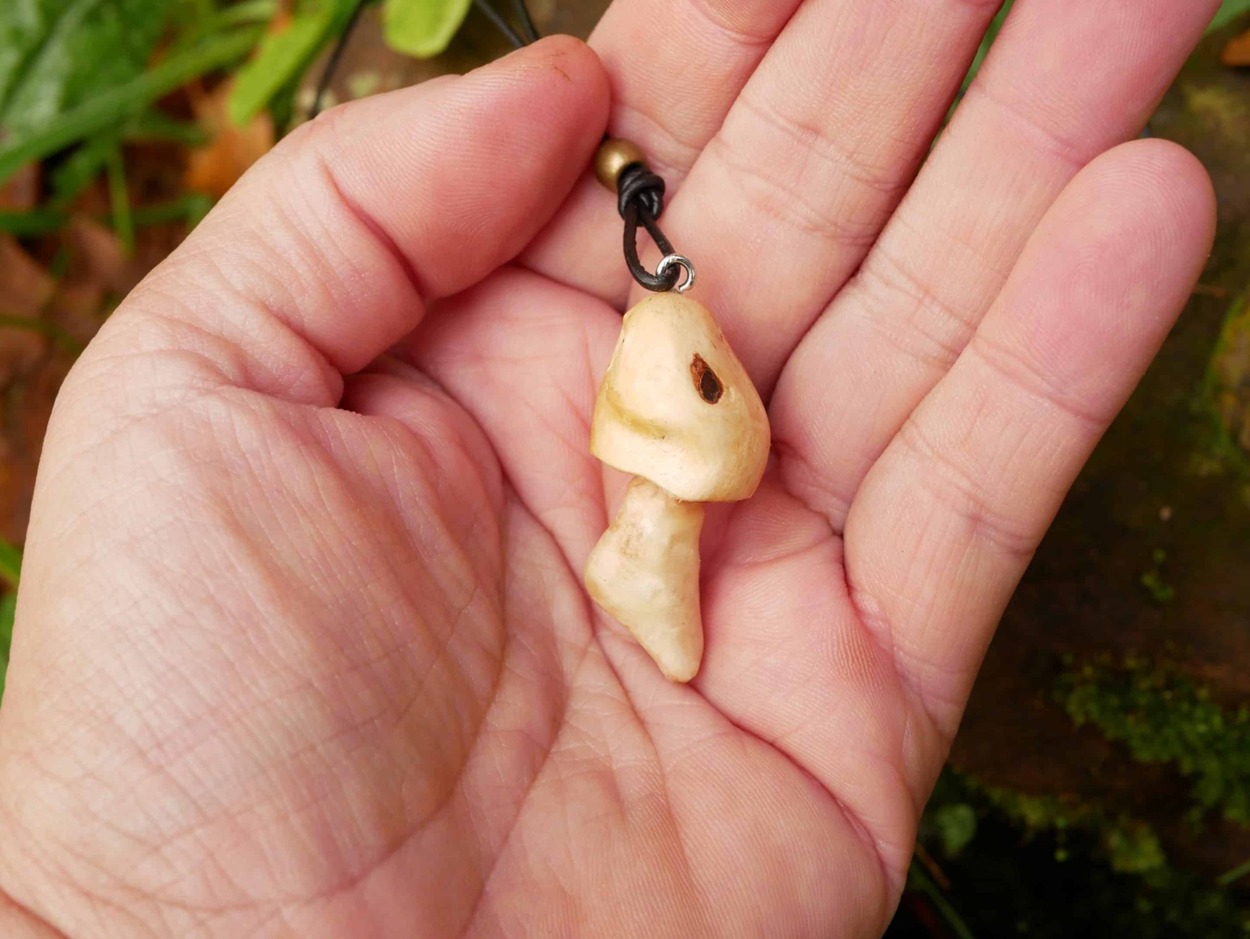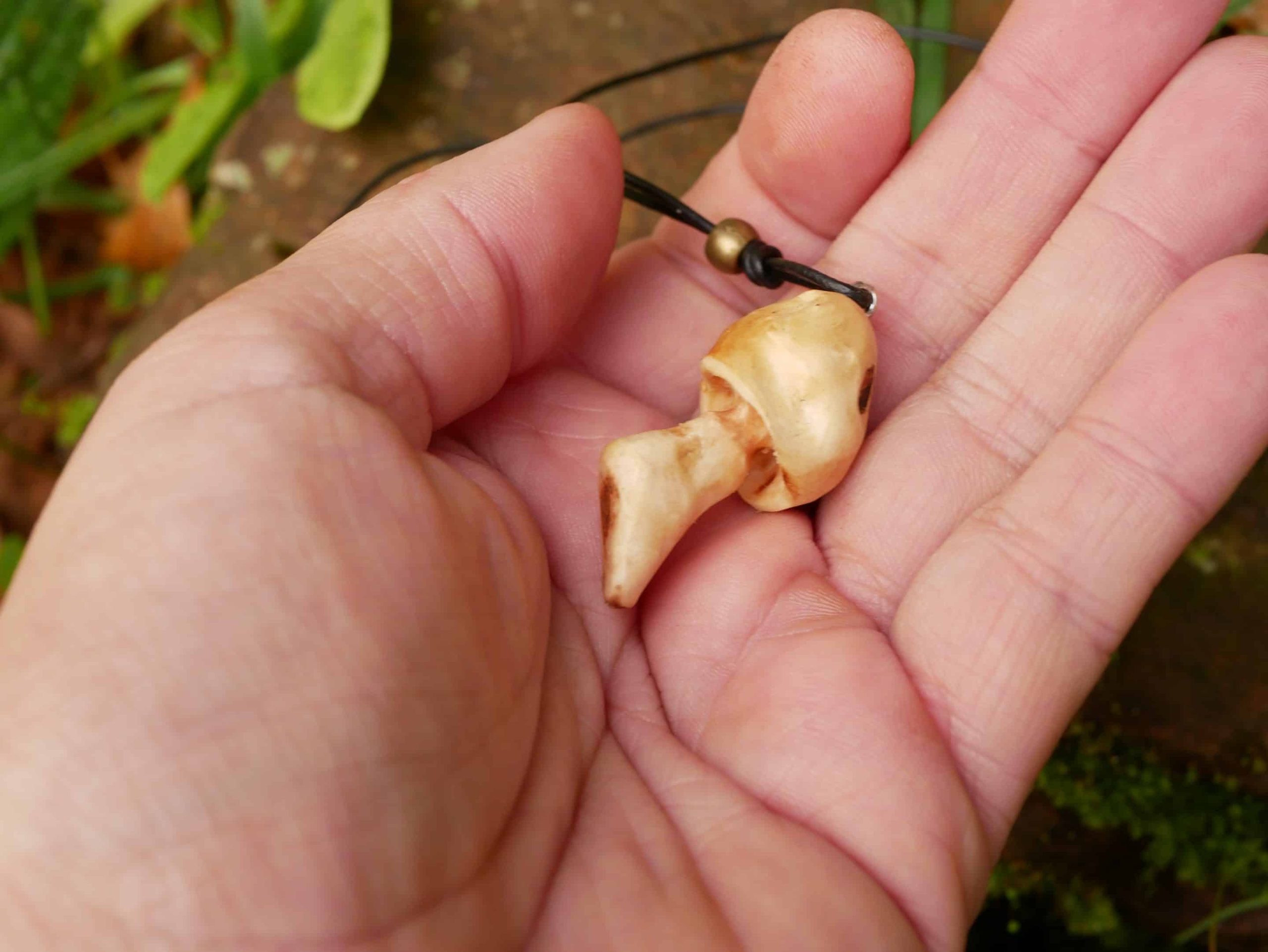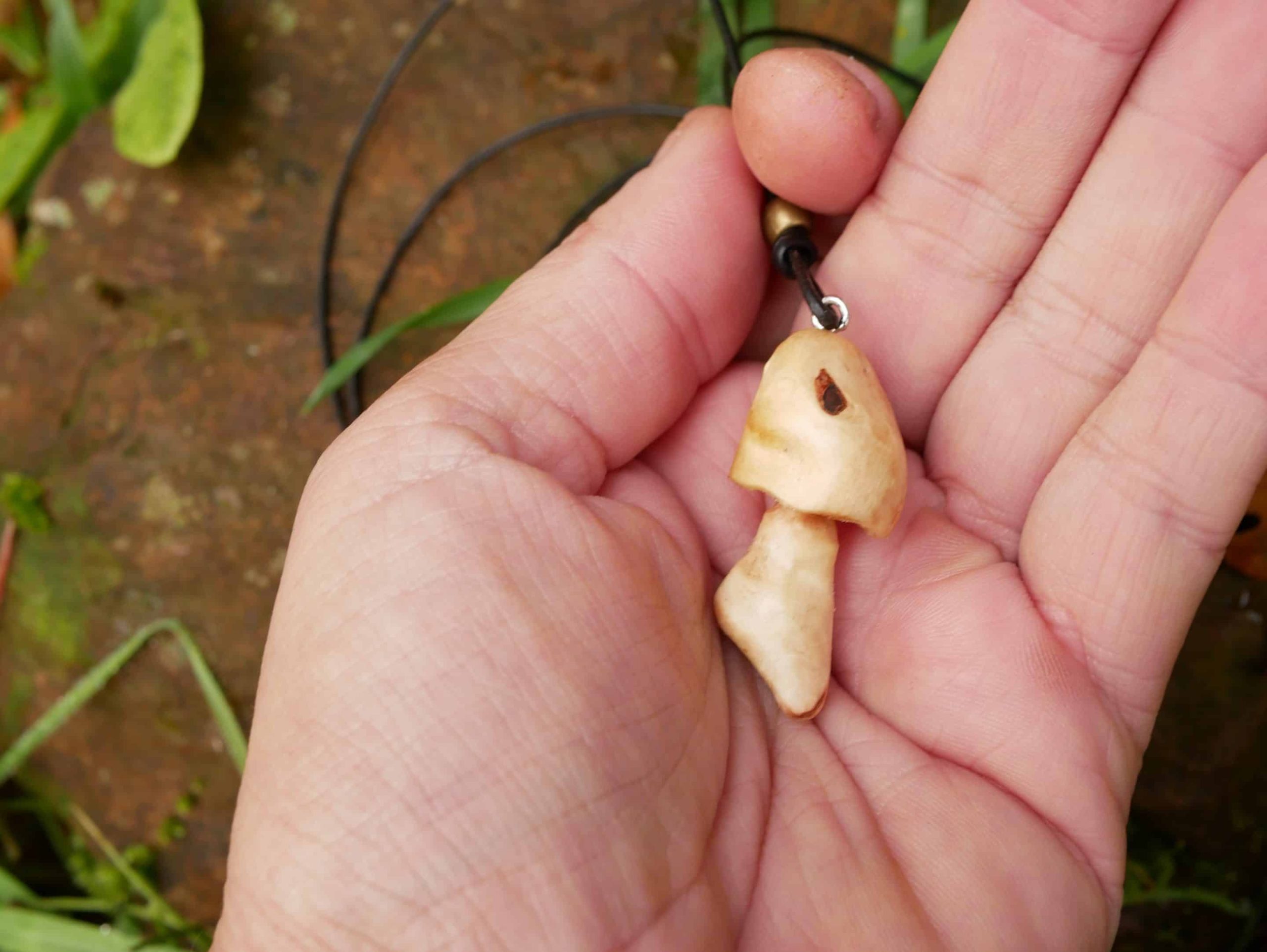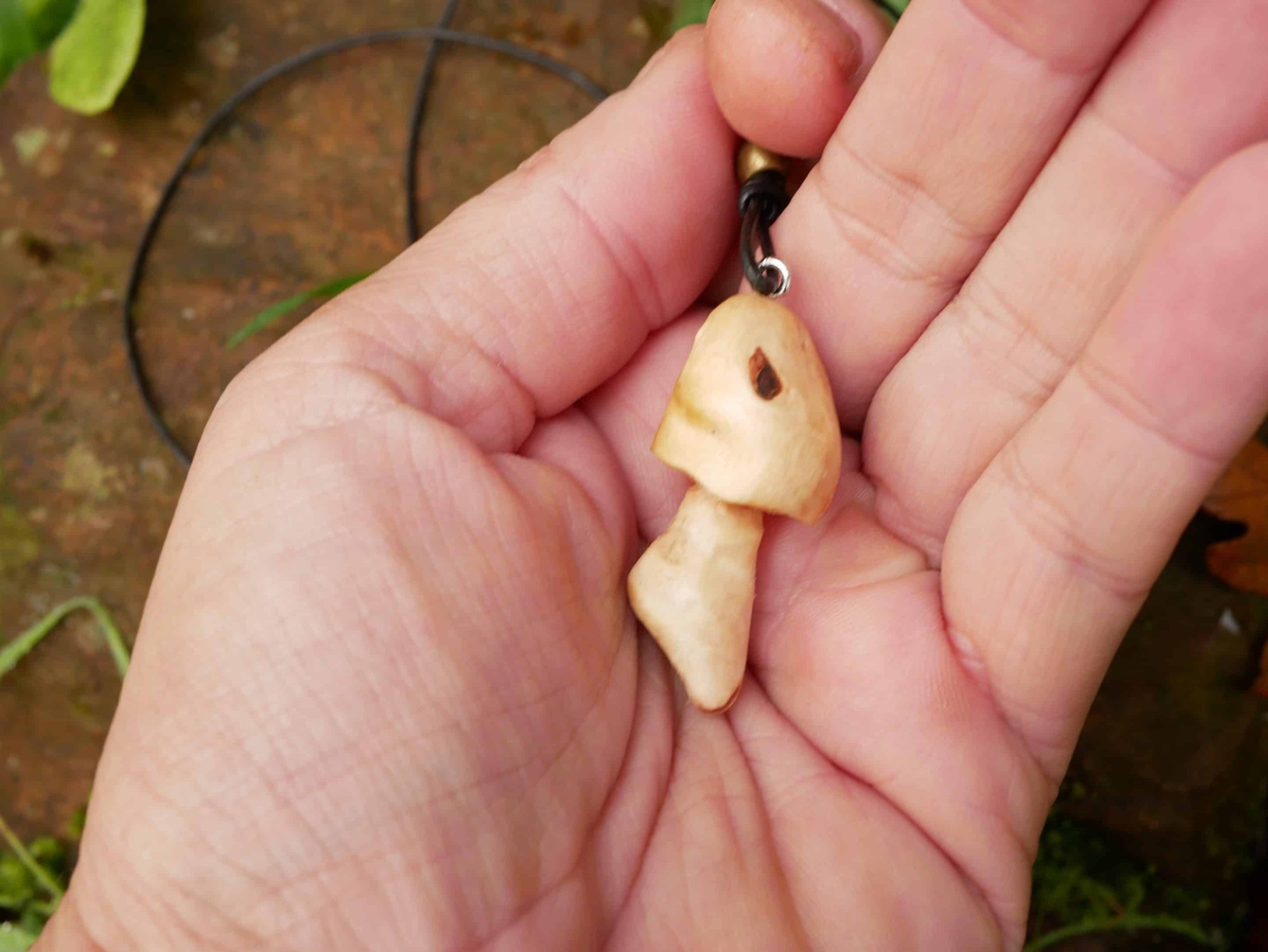 Eine Baumperle die zu einem Pilz geschnitzt wurde. Handmade. Handgeschnitzt.