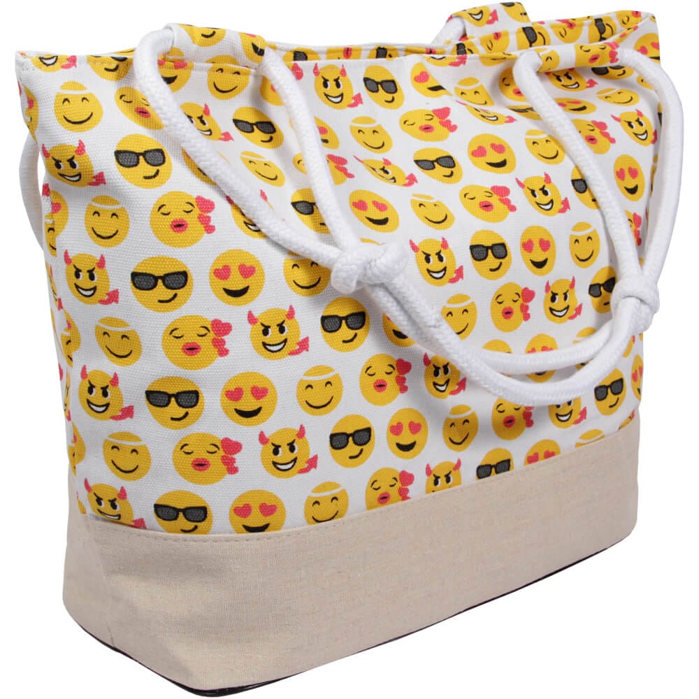Stelle dir einen sonnigen Tag vor, du flanierst durch die belebten Straßen oder den weichen Sand am Strand, und an deiner Seite schwingt eine stilvolle, weiße Einkaufstasche mit einem lebendigen Emoticon-Design. Die Praktische Shopper Einkaufstasche Strandtasche ist nicht nur ein modischer Hingucker, sondern auch ein unverzichtbarer Begleiter, der dir genügend Raum bietet, um alles Wichtige zu verstauen. Mit ihren großzügigen Maßen von etwa 48 cm x 35 cm kannst du sowohl deine täglichen Einkäufe als auch deine Strandessentials problemlos unterbringen.