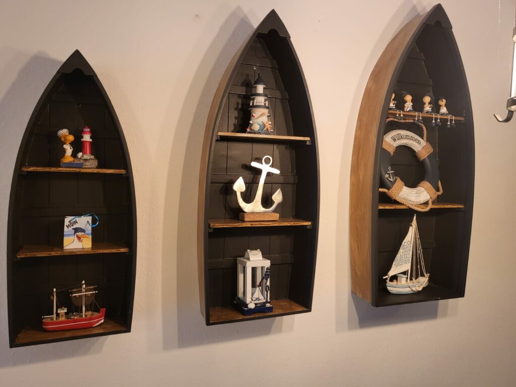 Egal, ob du eine kleine Ecke verschönern möchtest oder eine ganze Wand in deinem Wohnzimmer gestalten willst, das Regal “Ruderboot” passt sich deinen Bedürfnissen an. Wähle aus den verschiedenen Größen oder kombiniere sie zu einem beeindruckenden Gesamtbild. Jedes Regal ist dabei mehr als nur ein Aufbewahrungsort; es ist eine Bühne für deine wertvollsten Erinnerungen und Geschichten.