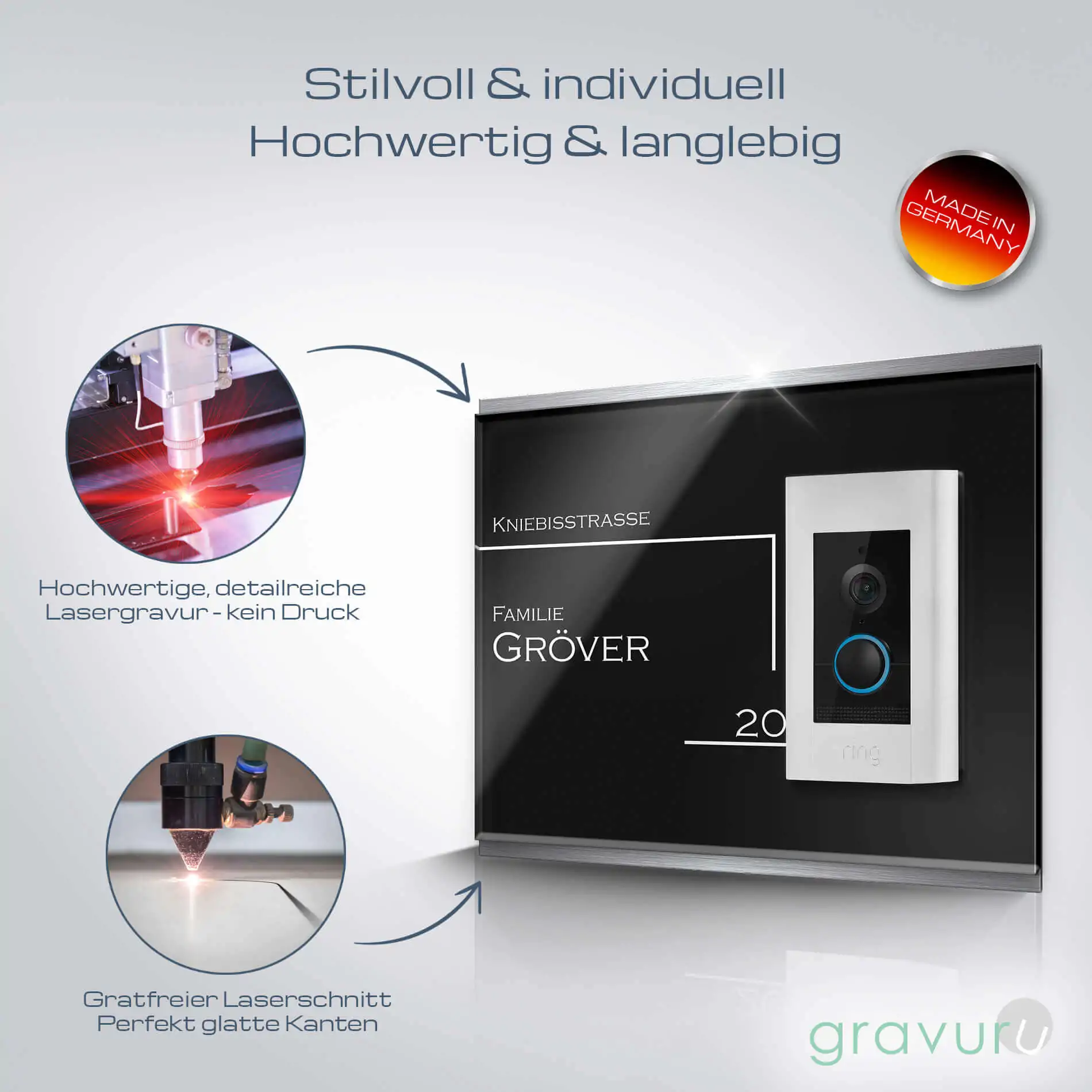 • Langlebige Gravur durch modernste Laser