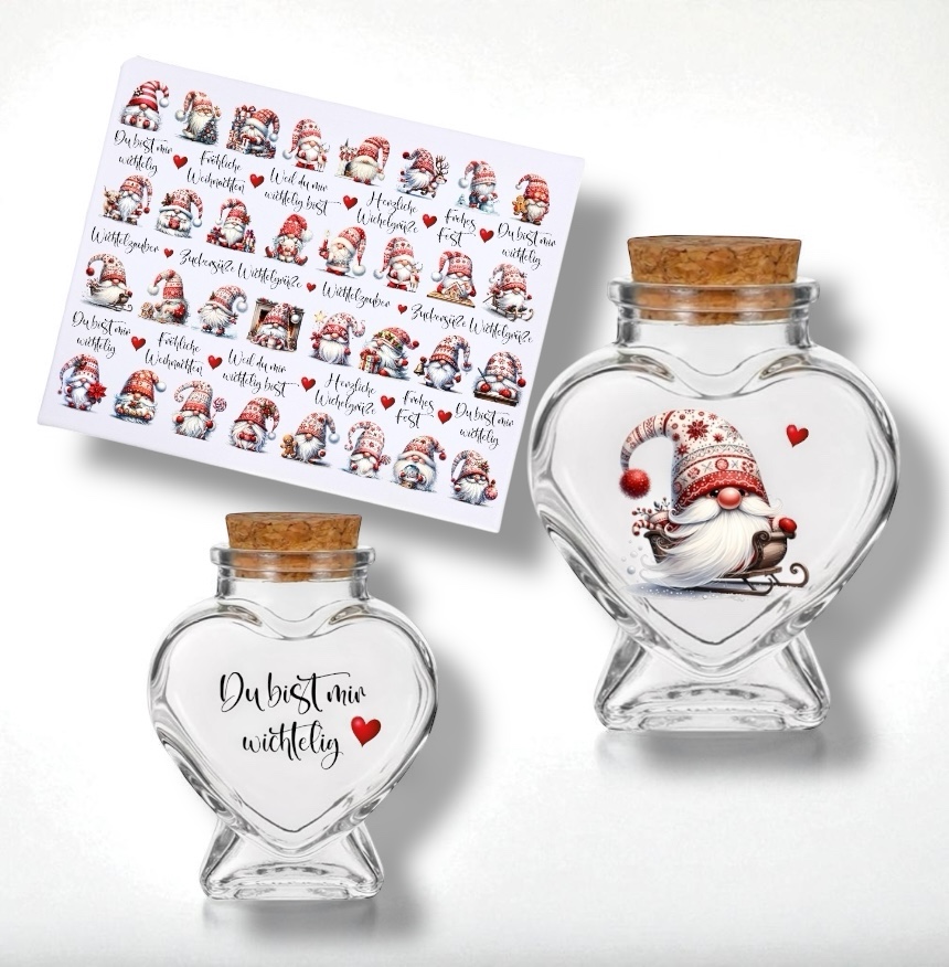 Rub-Ons-Sticker, #1 Mini-Wichtel rot, kleine Motive, Weihnachten, DIN A4, randlose Rubons Sticker