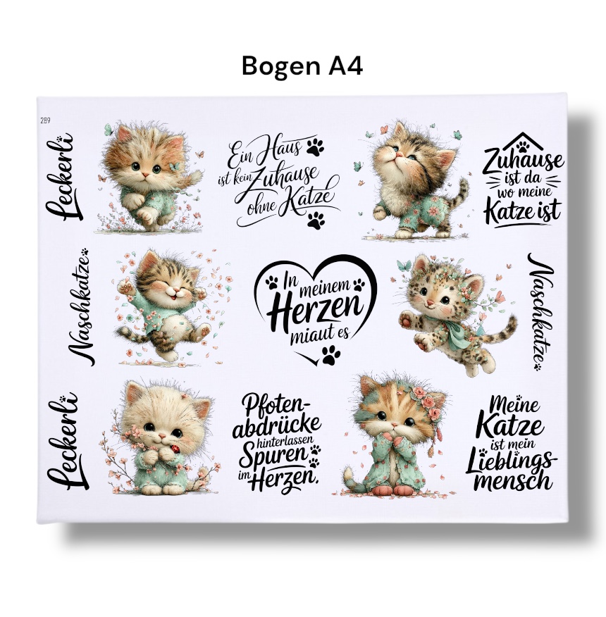 Rub Ons Sticker, Katze, DIN A4, lustige Motive, Sprüche, randlose Rubon