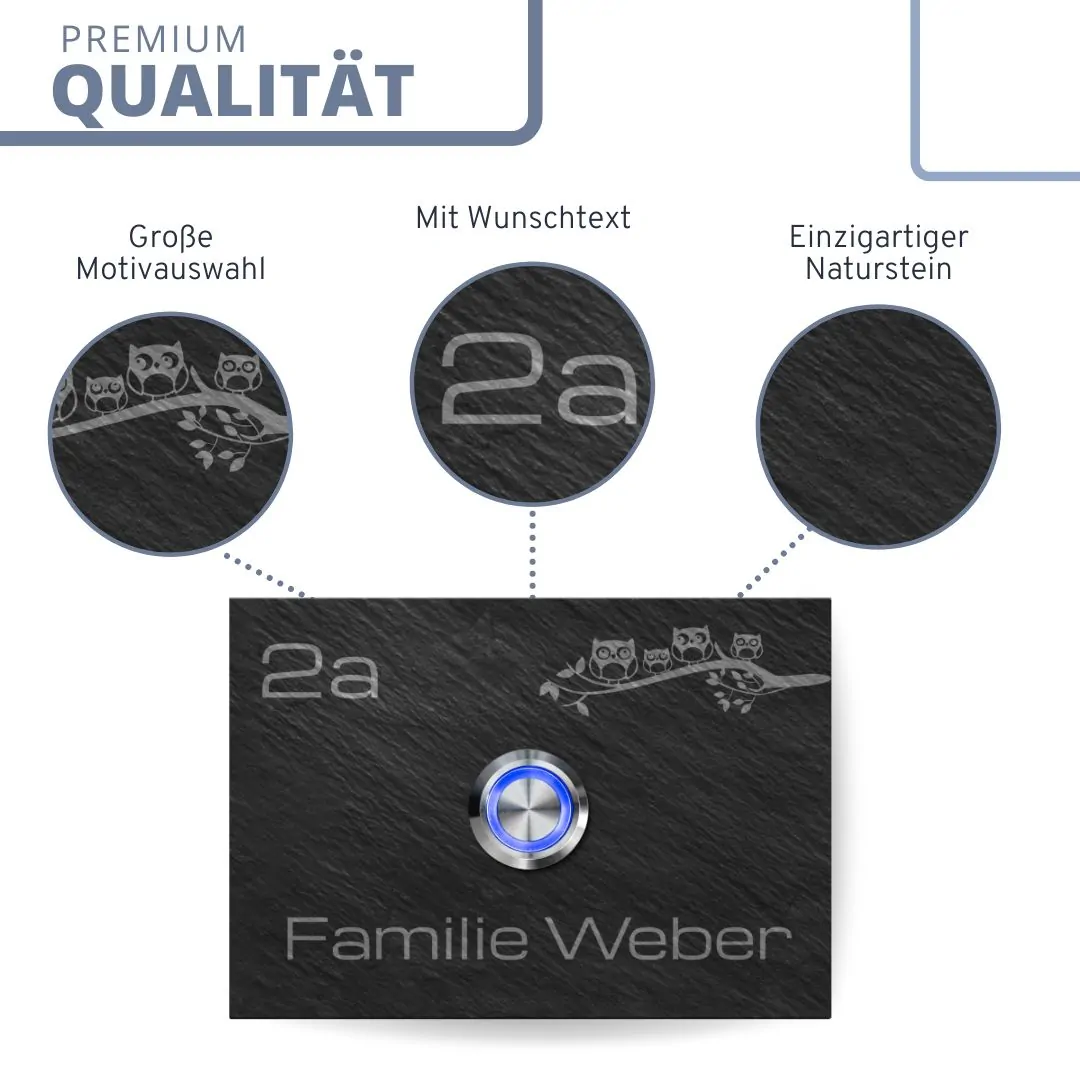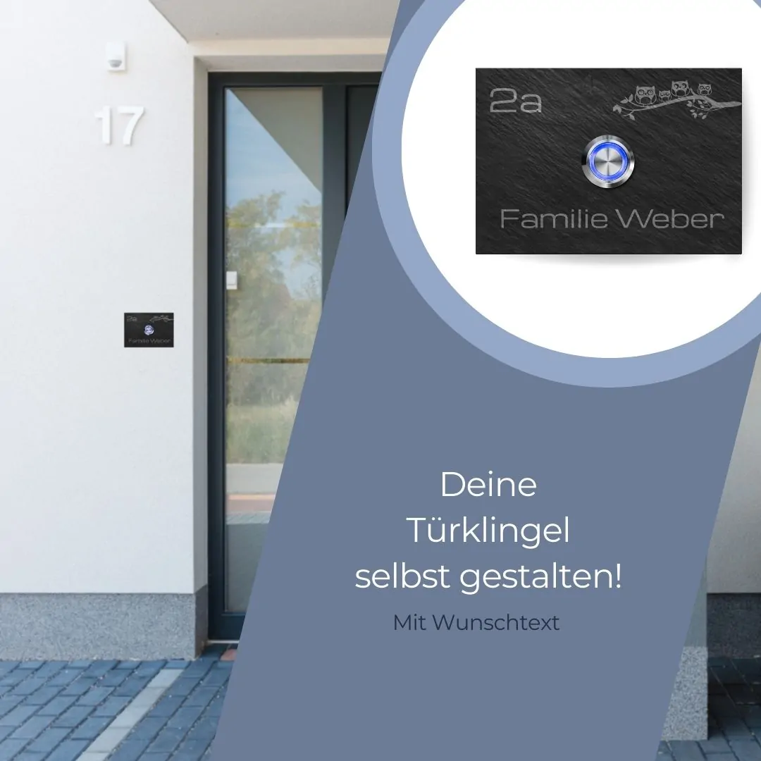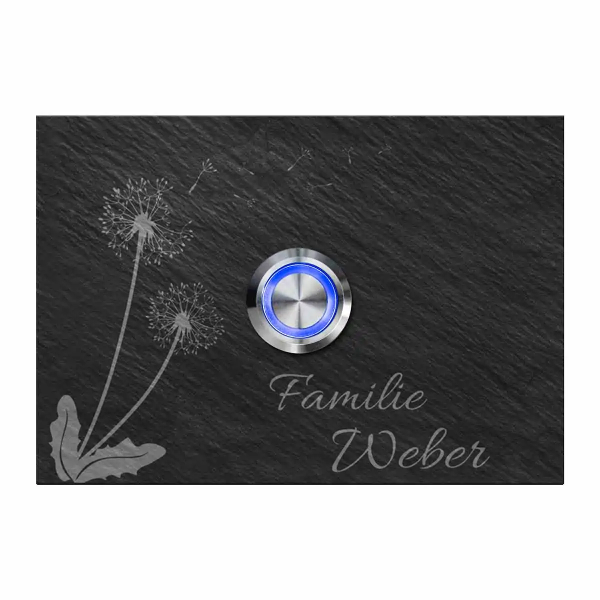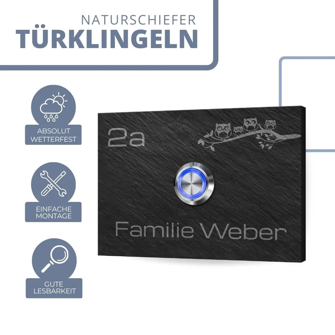 Türklingel aus Schiefer mit Gravur und LED Taster / Modell Weber-sch 10×7 cm