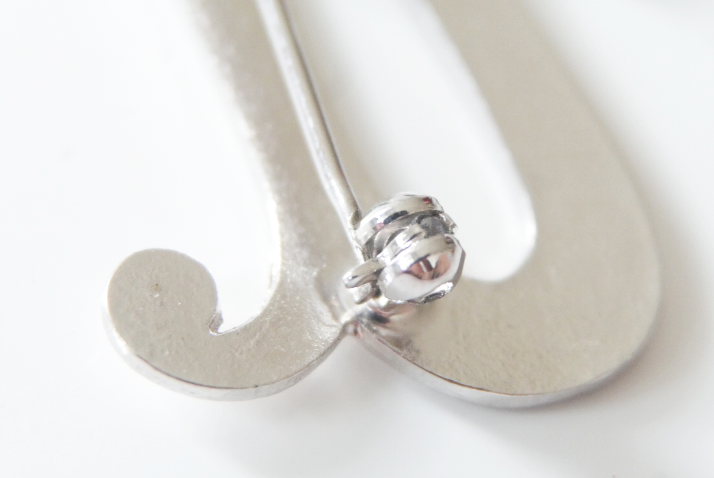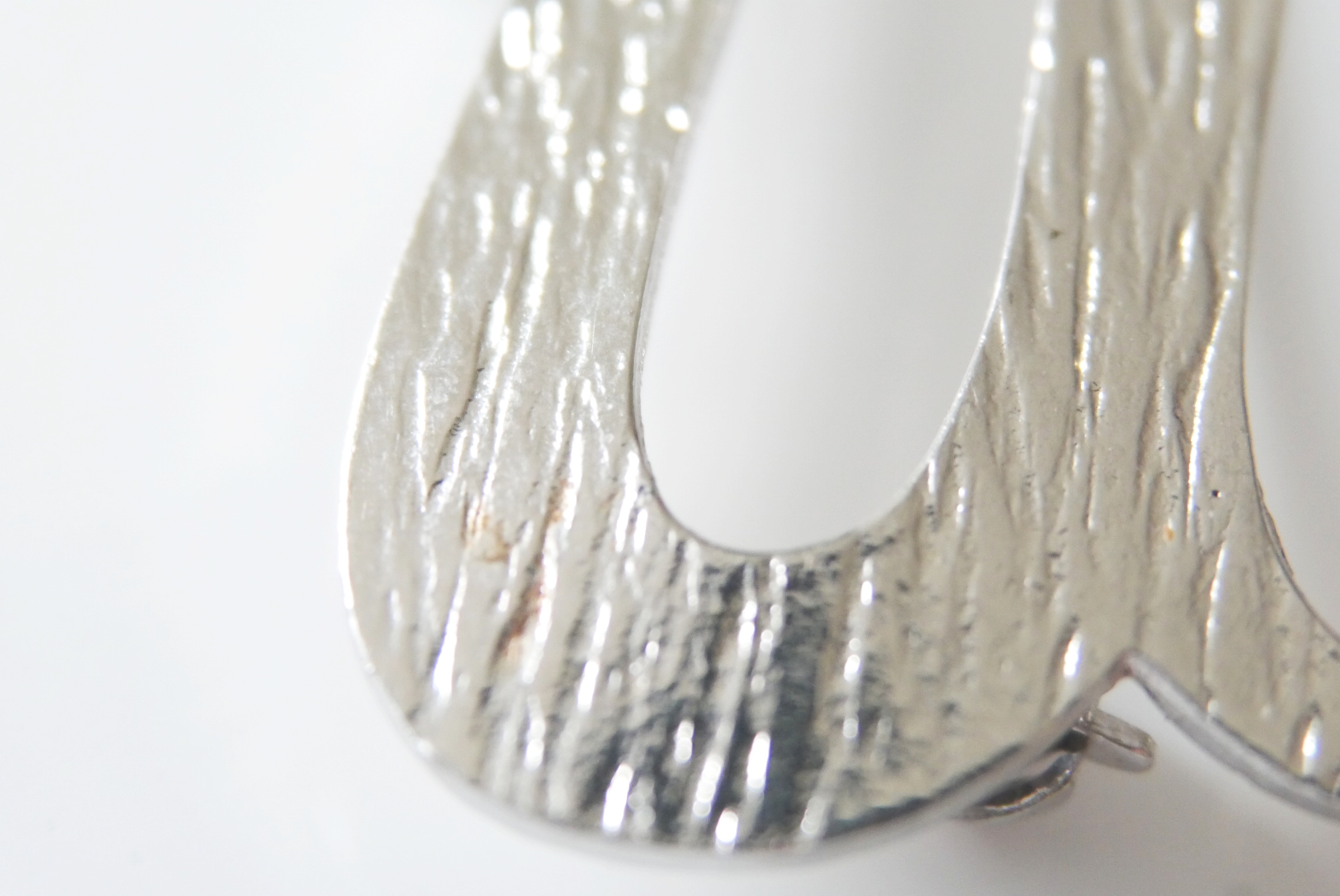 Eine schöne Second-Hand Vintage Brosche mit dem Buchstaben U neuwertig und fein zisiliert aus Silber mit Punze 83 und einem unbekannten Zeichen.
