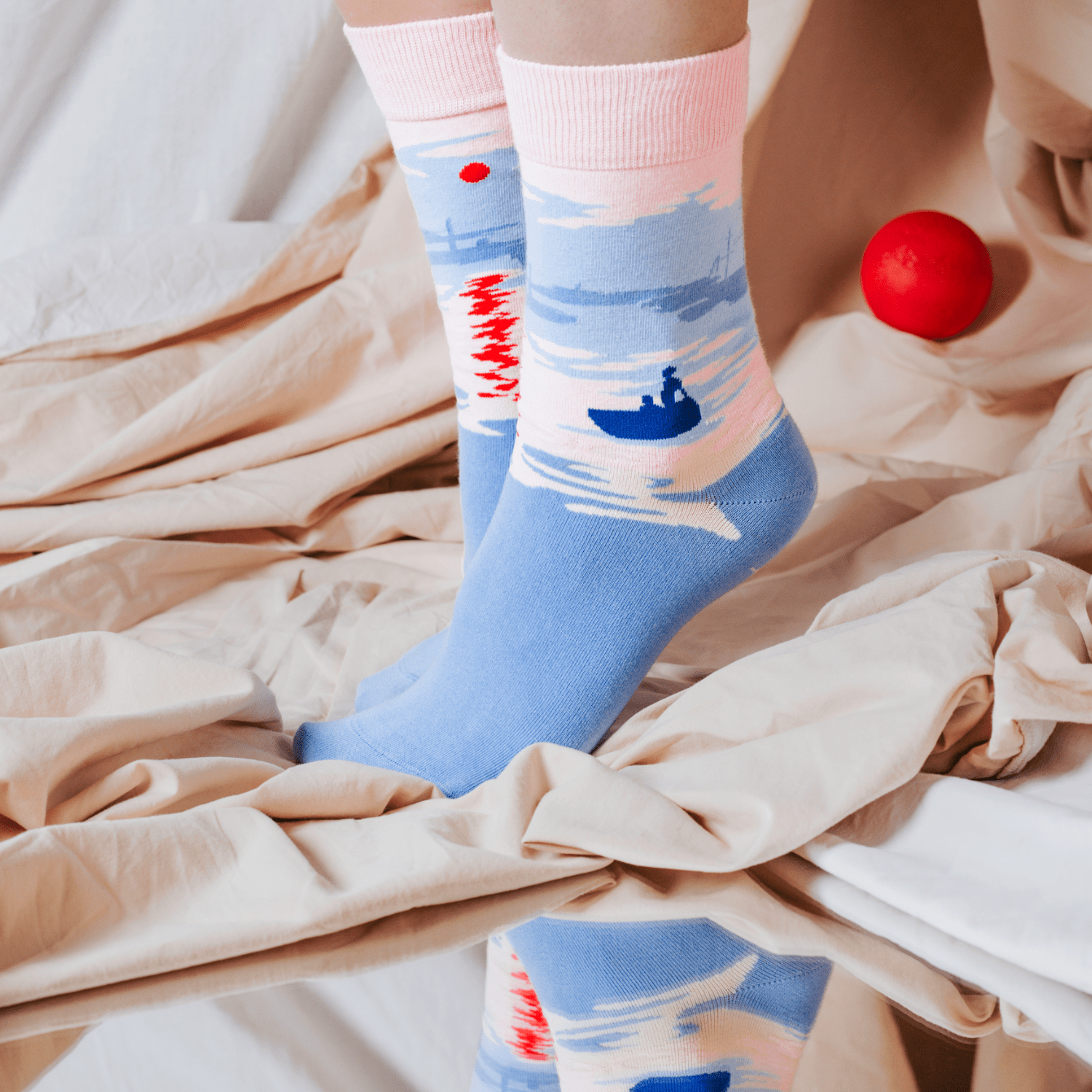 Die bekannten Meisterwerke von van Gogh, Monet, Kandinsky und vielen anderen hängen nicht länger nur in den großen Museen der Welt an der Wand, sondern liegen Dir jetzt neu interpretiert und wunderbar weich im wahrsten Sinn des Wortes „zu Füßen“, sorgen dort für ein kuscheliges und komfortables Tragegefühl und bringen Kreativität und Farbe in Deinen Alltag! Egal, ob Du ein Kunstkenner bist oder einfach das Besondere und Bunte liebst – diese Socken sind einfach ein Hingucker und eignen sich auch bestens zum Verschenken! Socken kann schließlich jeder gebrauchen, der nicht grad im Barfuß – Land wohnt, wo es immer mollig warm ist.