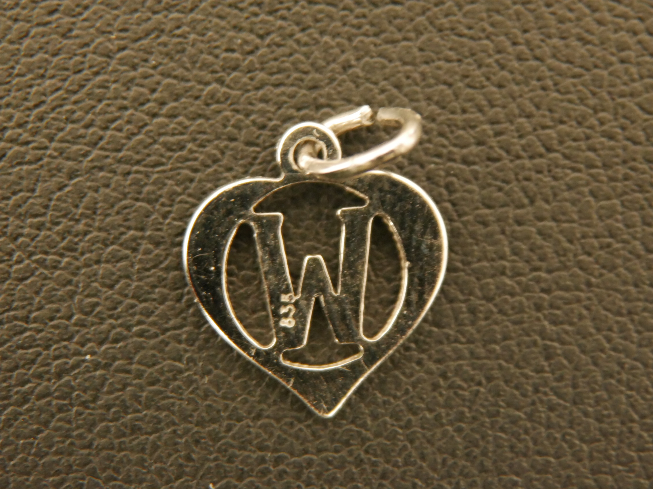 Der Herz Anhänger hat einen sehr schönen verzierten Rand mit dem Buchstaben “W” umrandet mit Strahlen Motiv.