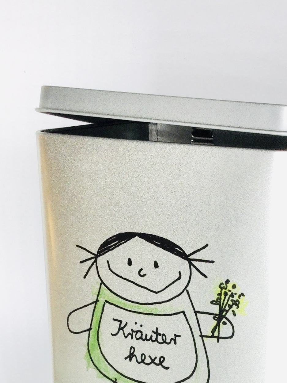 Die Teedose Kräuterhexe wird für mich in kleinen Auiflagen in Deutschland hergestellt. Hier findest du auch mehr Infos zu meinem Hersteller Dosenhersteller