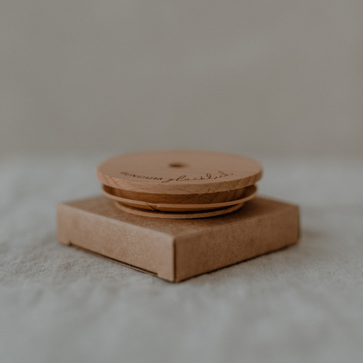 Dieser Trinkglasdeckel ist nicht nur super nützlich, sondern sieht auch noch ganz toll aus! Er wurde aus FSC-zertifiziertem Buchenholz sowie Elastomer gefertigt und in der Mitte befindet sich ein Loch für einen Strohhalm (ca. 0,9 cm). Auf dem Deckel wurde der Spruch „Rundum glücklich“ graviert. Diese Holzabdeckung eignet sich perfekt für die hohen Trinkgläser für 500 ml Flüssigkeit von Eulenschnitt. Auch an die passenden Trinkhalme hat Eulenschnitt gedacht.