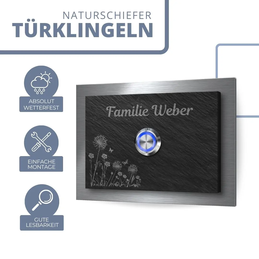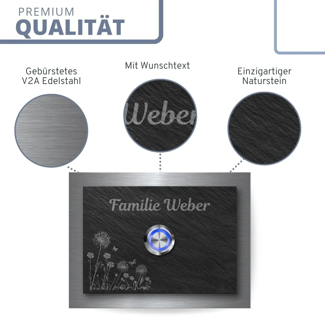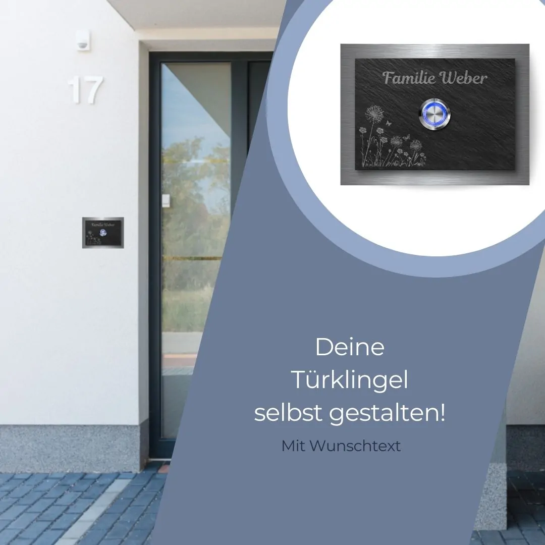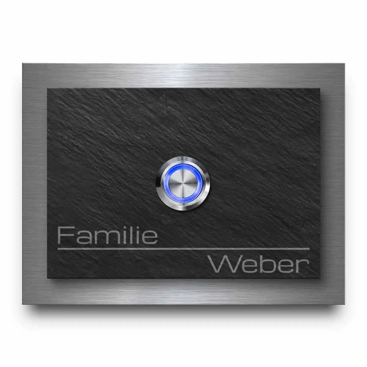 Türklingel aus Schiefer mit Gravur und LED Taster / Modell Weber-e 12×9 cm