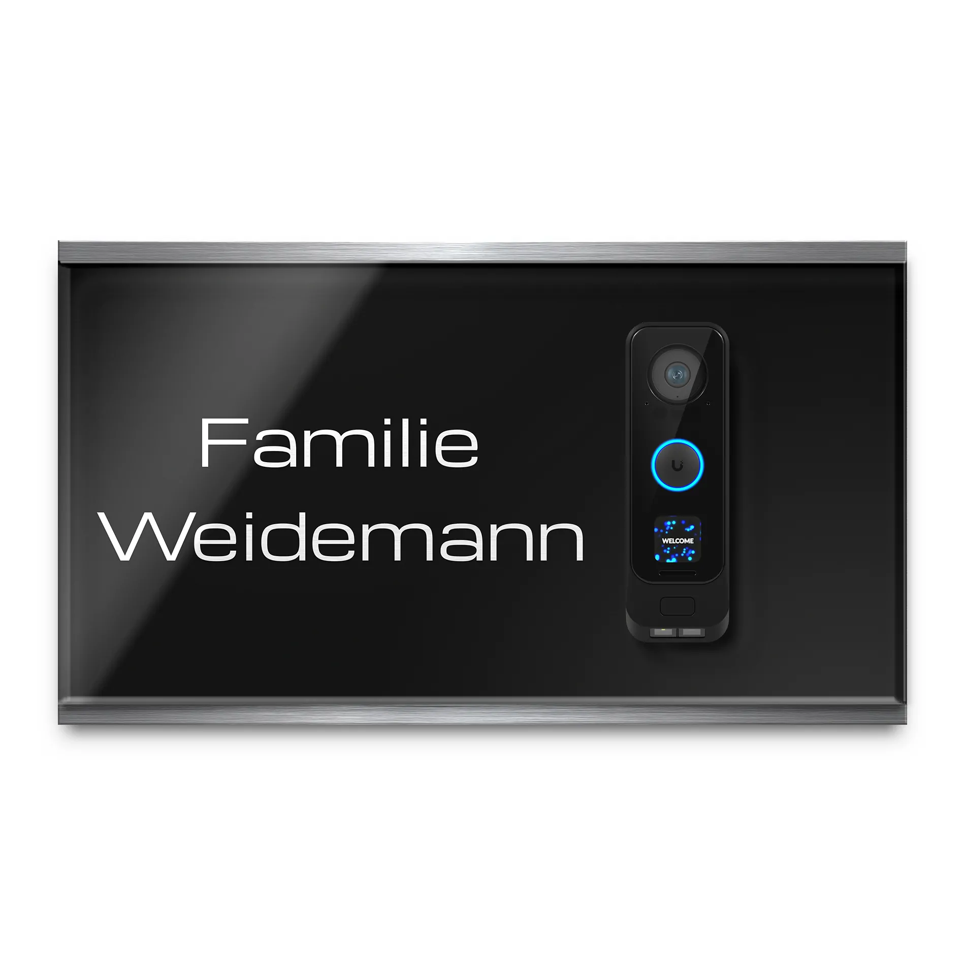 Du suchst eine stilvolle Möglichkeit um Deine Funkklingel im Hauseingang zu befestigen? Gestalte eine Klingelplatte für Deine Funkklingel und personalisiere sie genau nach Deinen Wünschen. Unsere hochwertigen Funkklingelschilder aus massivem V2A Edelstahl und hochglänzendem Acrylglas machen Deine Doorbell Türklingel zu einem echten Hingucker im Eingangsbereich.