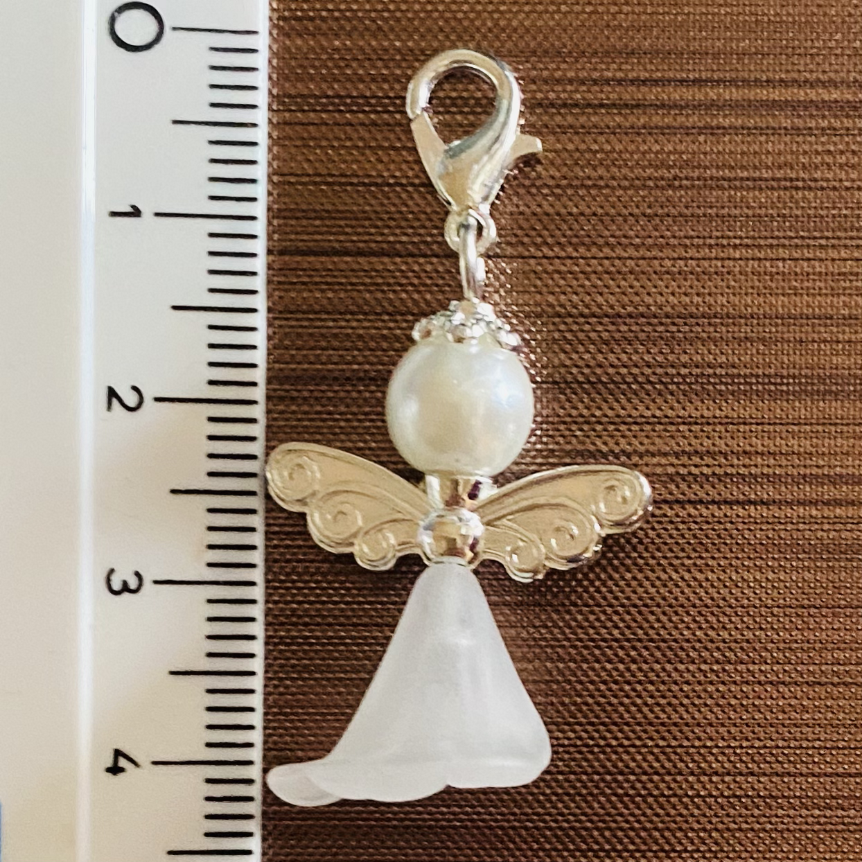 Ein Perlenengel hat mit Karabinerhaken eine Gesamtlänge von ca. 4,5 cm siehe Bild 2.