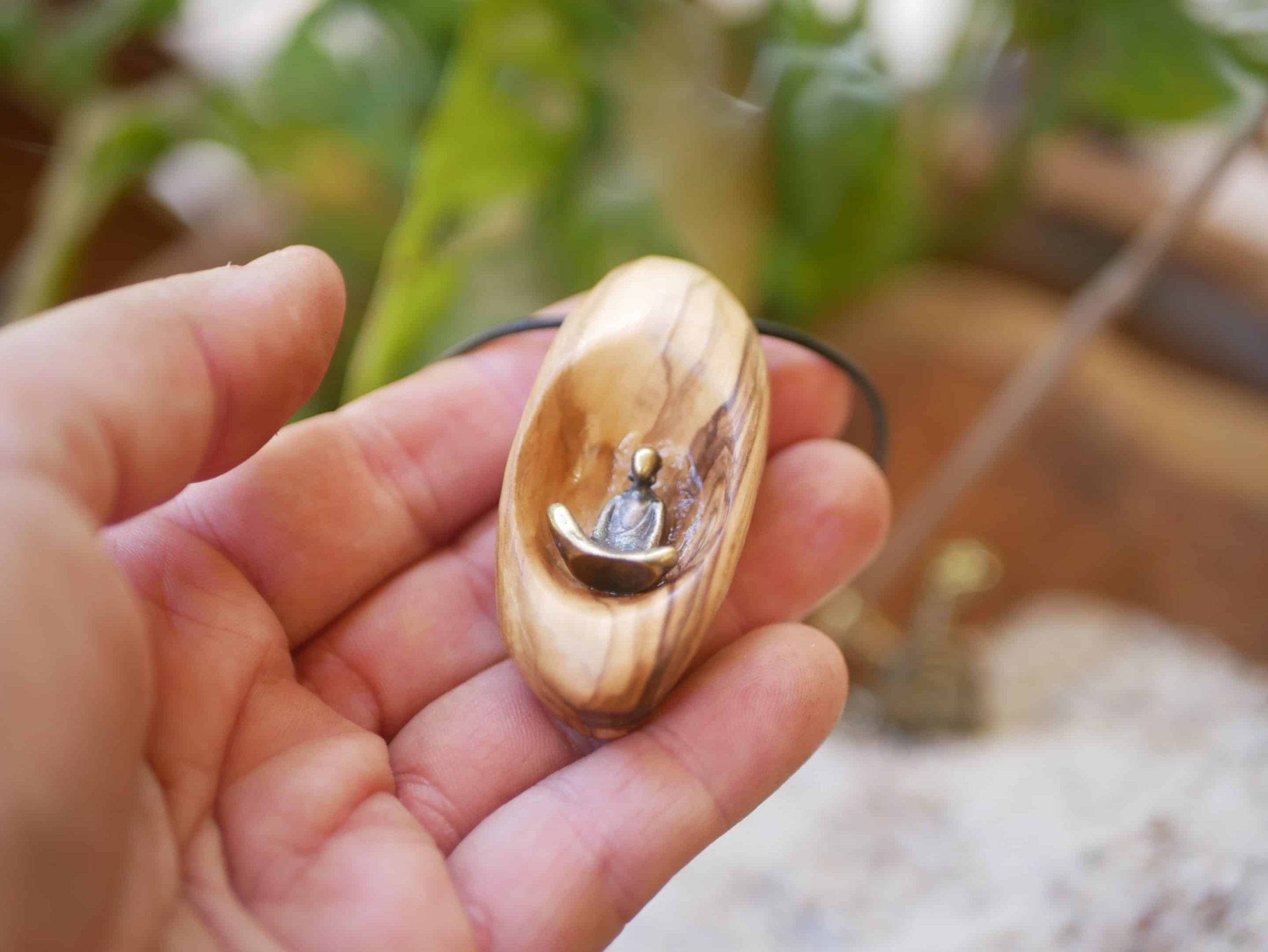Das Olivenholz, mit seiner charakteristischen Maserung und warmen, goldenen Farbe, verleiht der Figur eine einzigartige Ästhetik und macht jedes Stück zu einem Unikat.