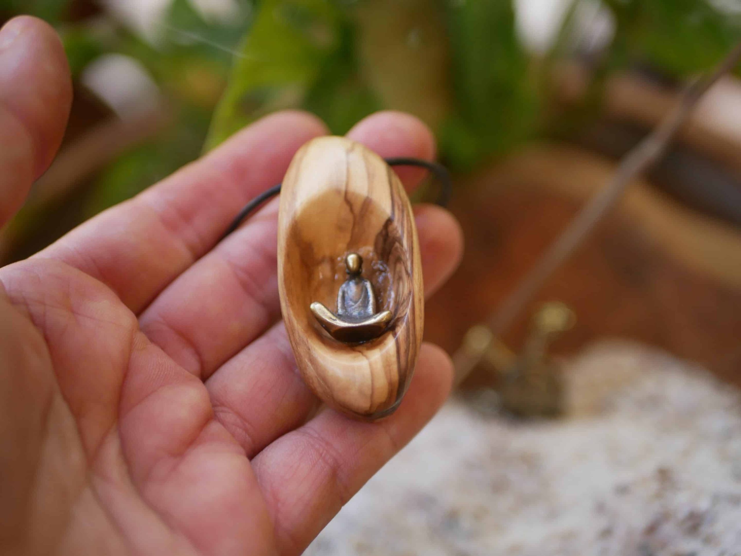 Olivenholz ist bekannt für seine Langlebigkeit und die reiche Textur, die die Buddha-Figur zu einem Blickfang und ist ein wunderschönes Schmuckstück.